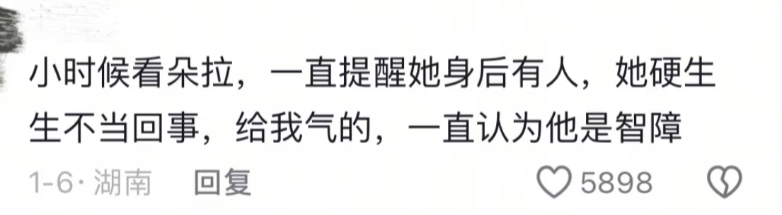 小时候看朵拉,一直提醒她身后有人,她硬生生不当回事,给我气的