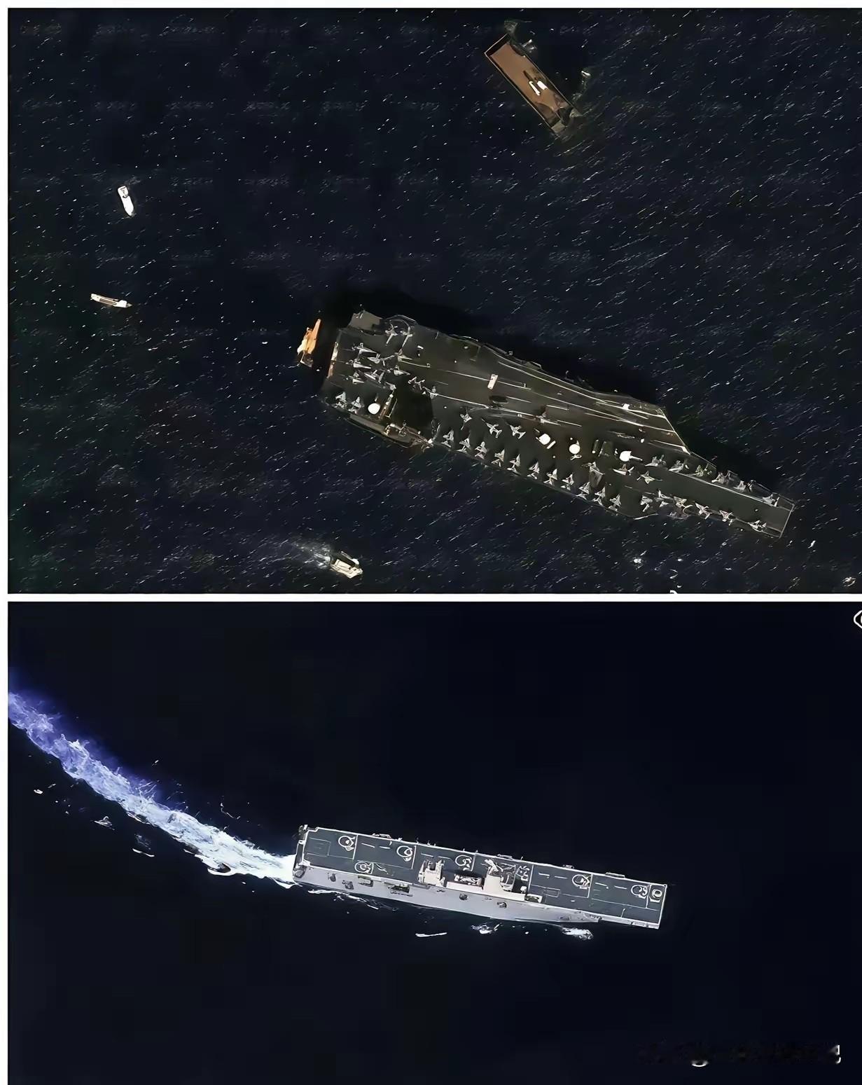 魔高一尺,道高一丈! 美国拍中国的075,我们就拍你的航空母舰。 你白天拍,我们晚上拍,看看谁的技术好。 美国夜间的航母停满了舰载机,数量是一清二楚,如果是白天拍,是不是飞机的型号都可以看清楚。 从两组照片可以看出,中国的075速度明显大于美国的航空母舰。 不知道美国看见这组照片,是什么感觉!