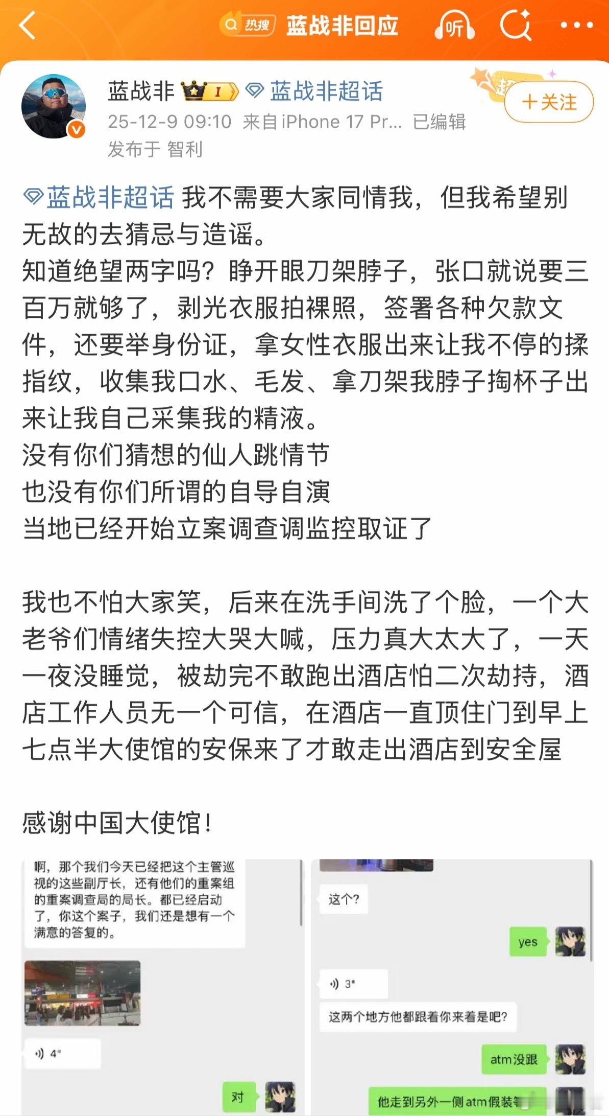 蓝战非被绑架了?游戏主播蓝战非被绑架2025.12.9日,2025年12月9号