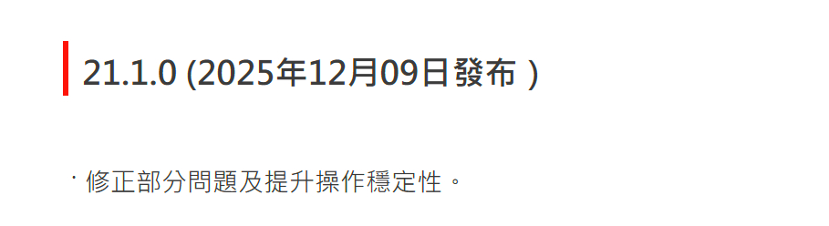 【Switch/Switch 2系统更新21.1.0发布】任天堂今日发布固件更新,适用于Nintendo Switch和Nintendo Switch 2。这次版本更新为21.1.0,用户们会陆续收到更新推送。此次更新修复了部分问题以及操作稳定性。