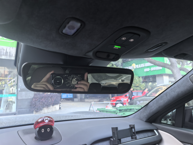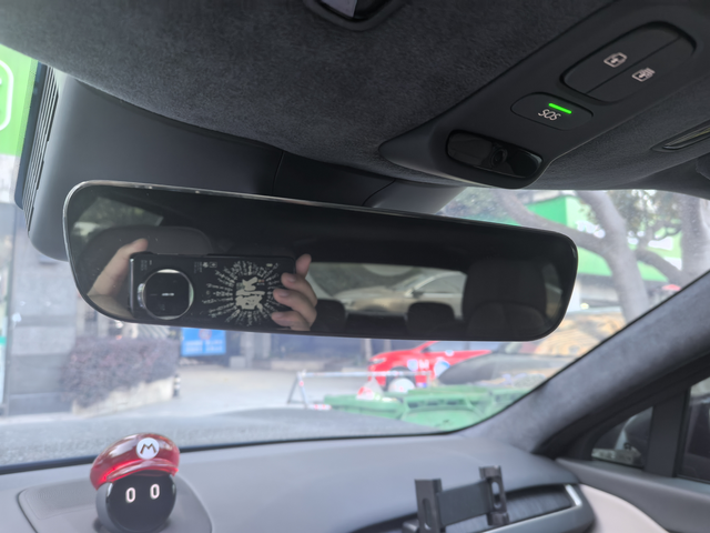 这后视镜有点东西 蔚来这个车内后视镜不知道大家有没有发现一个小秘密,其实它是一个无边框后视镜,上面默认套了一个小小的塑胶圈,提车时候也木有介绍,所以我也是很久之后才发现的。只需要用手一摘就能取下来,虽说也不是啥大区别,但是视觉上显著的提高了颜值,一下子高级感就增加了,更性感了一些哈哈。 估计蔚来大部分车型都是这样,不知道朋友可以去试试看