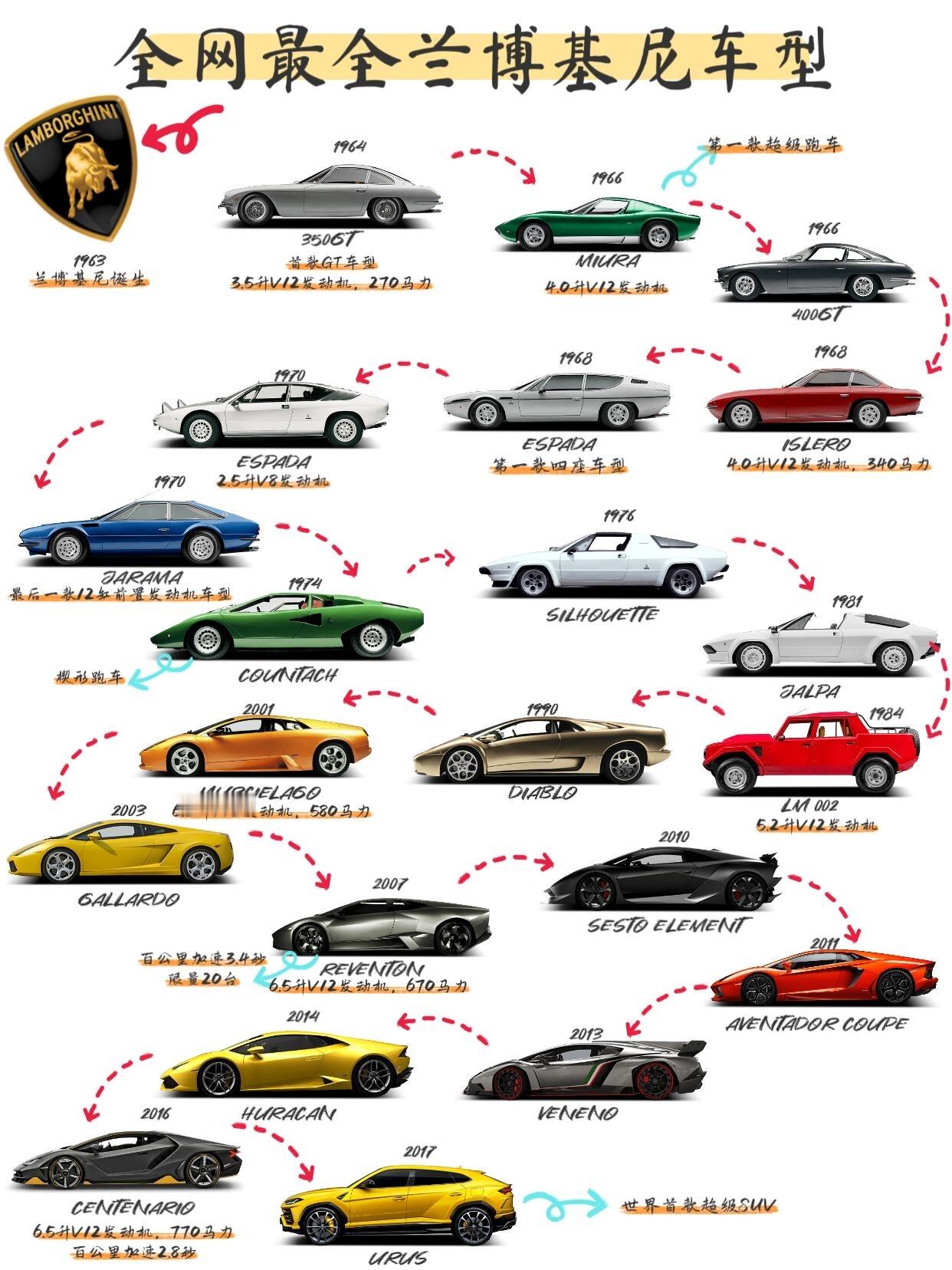 一位网友整理的兰博基尼历史车型演化图,非常nice !你是从哪一代车型喜欢上La
