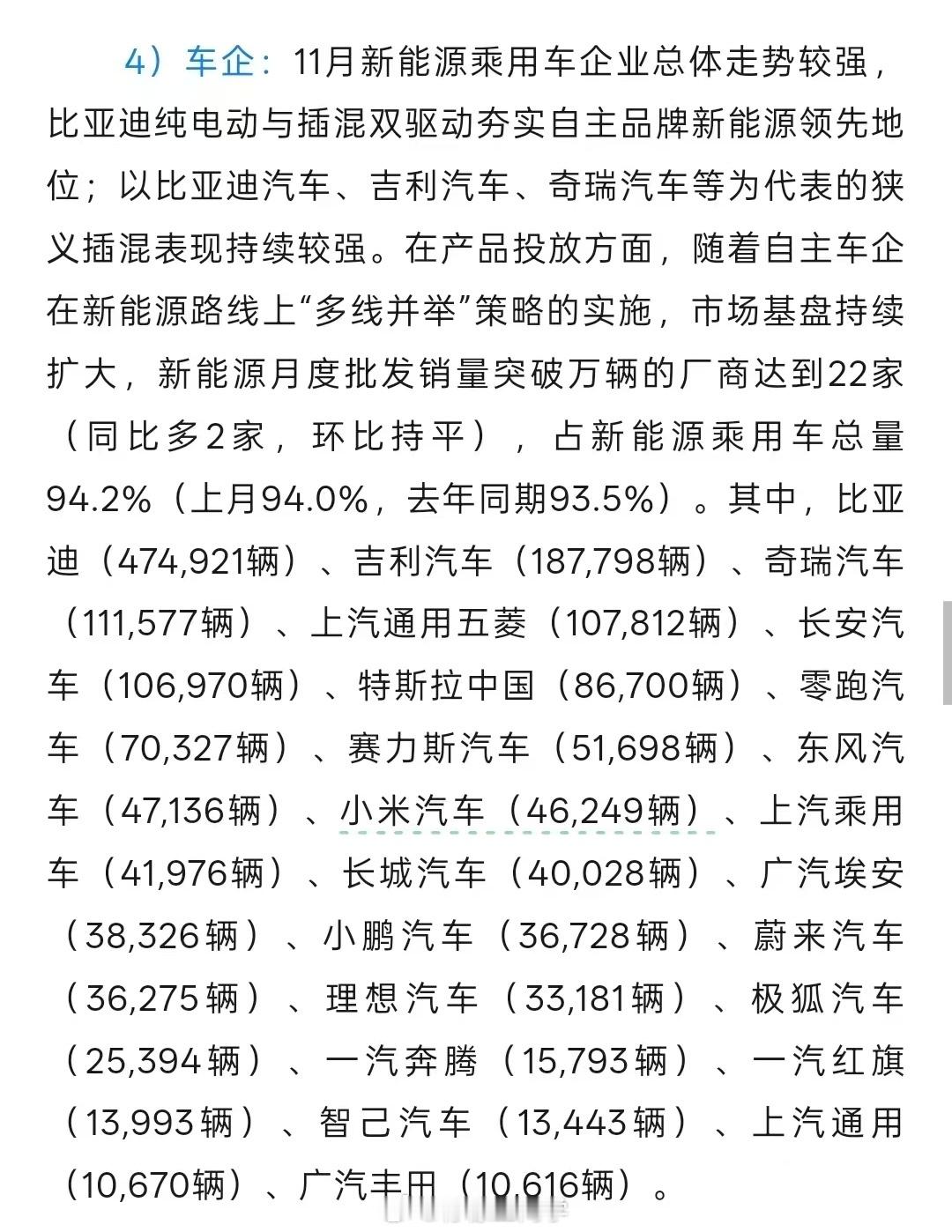 好家伙,小米一连三款新车曝光,大尺寸SUV YU9、高性能SUV YU7 GT和SU7的行政加长版SU7 L小米三款新车齐曝光于我个人而言还挺期待小米这些车型上市,在过去小米汽车获得了不错的成绩。11月根据乘联会的数据,小米汽车总共46,349台,其中YU7单车33,729台,无定语的车型前十,而SU7卖了一年了,还是20万以上市场的第一而且从技术层面上看,这么多专业机构拆车看下来小米汽车无论是用料还是做工上都是行业领先的水平,国外的顶尖媒体都在盛赞小米汽车,福特CEO从运回5辆国产新能源回总部研究,直言最喜欢SU7;而宝格丽的CEO夸赞小米汽车的成就堪比苹果网上可能小米汽车口水战没赢过,但是销量没输过,出一辆爆款一辆,到底有什么秘诀