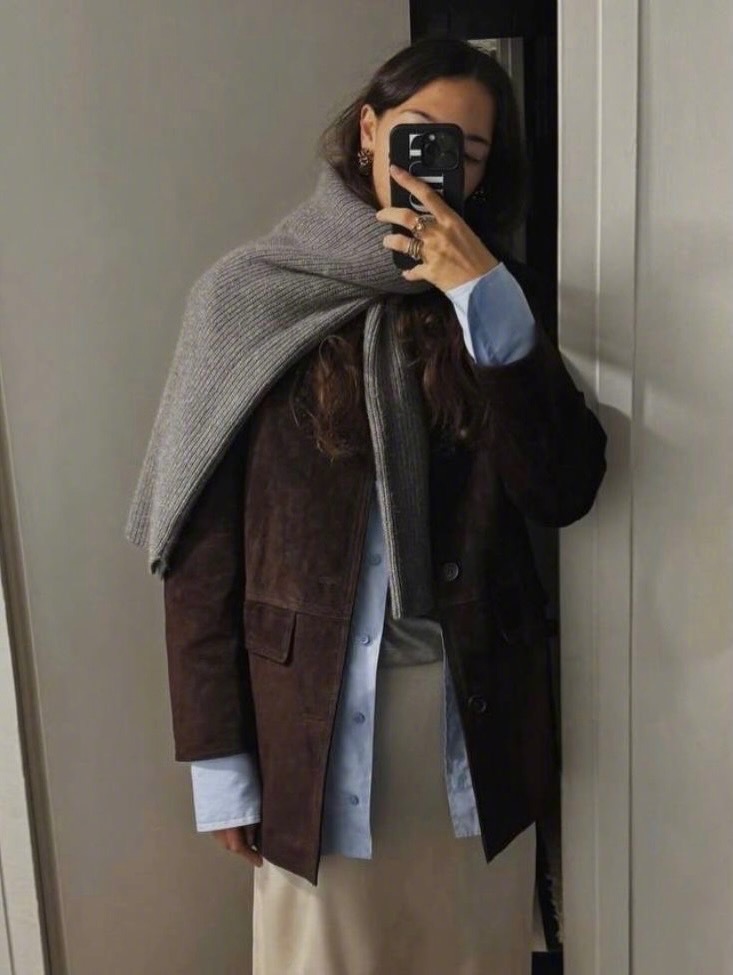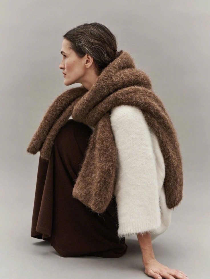 今年冬天学着把毛衣披在肩上🧣用毛衣当围巾,是今年最火的“偷懒式时髦”穿法,它可