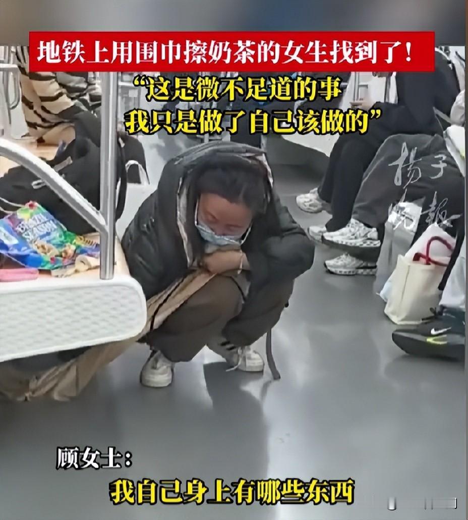 12月9日报道这两天,一位苏州地铁上“用围巾擦咖啡的小姐姐”突然火了,人刻在骨子里的善良,不分事情的大小,有人觉得这种素质是“理所应当”的,可在如今社会,其实这种素质挺“稀缺”的。[黑线] 这几天,在苏州地铁车厢里发生的一件事,引起了许多人的注意,一位女乘客不慎打翻了咖啡,她的后续处理方式,让周围的人和后来的网友们心生暖意。 事情发生在12月3日晚高峰的11号线车厢,咖啡洒落,迅速流到了座位和地板上,遇到这种情况,通常的做法可能是通知工作人员,或是在下一站下车,但这位乘客接下来的举动,有些出乎旁人意料。 她先是拿出随身携带的纸巾开始擦拭,发现纸巾不够用后,她没有停下,而是解下了自己佩戴的围巾,继续蹲下身清理地面,仔细擦拭座椅的缝隙,这个过程持续了几分钟,直到把污渍处理干净。 有同车的乘客用手机记录了这个过程,很多人表达了对这位乘客的赞许,她的做法被看作是一种对公共环境主动负责的态度。 随后,苏州地铁运营方也注意到了这件事,他们通过官方渠道寻找这位乘客,表示希望向她赠送一条新围巾和文创产品,以此表示感谢,12月7日,这位乘客被找到了,据了解,她姓顾,日常往返于昆山和苏州工业园区之间。 顾女士感到有些意外,她表示,自己只是觉得应该处理好自己造成的污渍,同时也希望用行动传递一份维护公共环境的责任感,她认为这只是一件平常的小事。 自己弄脏自己收拾是基本的道理,无需过度表扬,这种看法本身有其道理,然而,在现实的公共场合,特别是在地铁这种有固定保洁服务的地方,能够不假思索地,如此彻底地亲自动手清理,并且不惜使用自己的随身物品,这种即时反应和付出的意愿,依然让许多人感到触动。 地铁方面没有让这件事仅仅停留于网络讨论,而是主动寻人并表达谢意,这种来自公共机构的,对个人善意行为的看见与回应,本身也构成了一种积极的互动。 一座城市的日常运转,不仅依赖于硬件设施和规章制度,也离不开生活其中的人们自觉维护公共环境的具体行动,像这样将车厢视为需要共同爱护的空间,并付诸实际行动的例子,为城市的公共生活增添了细腻的温度。 当小事发生在自己身上时,选择不回避,并且负责到底。这种态度,无论在什么场合,都具有值得欣赏的价值。 善良刻在她的骨子里。 “这才是真正的‘勿以善小而不为’,细节见人品,用自己心爱的围巾擦地,这份实打实的担当,比喊一百句口号都实在。” “她最后提到想给孩子做榜样,我特别有共鸣,公共素养就是这样,言传身教,一点点做出来的。” “自己弄脏自己收拾,本来就是应该的,现在怎么反而成了‘好人好事’了,难道我们不该讨论一下,为什么本该正常的事,却变得如此‘罕见’吗。” “说实话,我可能做不到用围巾,但我会尽量用纸巾擦干净,最烦那种在电梯里吐痰,在地铁里乱扔垃圾还觉得理所当然的人。” “看看那些在公共场所任由自家孩子吵闹,乱跑,还觉得‘孩子还小’的家长,再看看这位小姐姐,高下立判,公共场合,管好自己和属于自己的东西,就是最大的善良。” “这件事的亮点有两个,一个是小姐姐的自觉,另一个是地铁方面的‘看见’和感恩,这种正向反馈的闭环特别重要,它鼓励了下一个可能想这样做的人。” 如果你在公共交通上不小心弄洒了饮料,你的第一反应会是什么?是寻找保洁人员,还是尽自己所能先做处理? 信源:人民日报