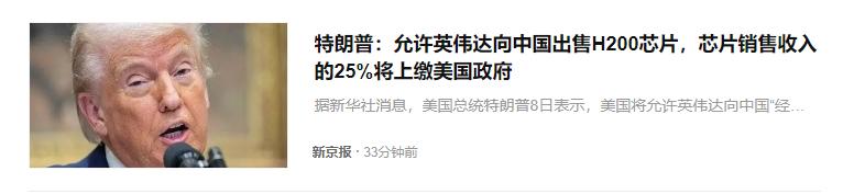 美国又要卖H200芯片给中国了,专属定制,而且说了利润20%归白宫,给我印象是:美国的白宫是推销员。 前面的H20可能对着中国轰20吧,这个H200又是给谁定制的。中国买了吧,不安全,所以还是交给“市场”,估计也没有市场,专属定制,还不是自己定制的,怎么买呢? 美国最好的办法是,放开芯片市场,我们去挑,而不是美国“推荐”。