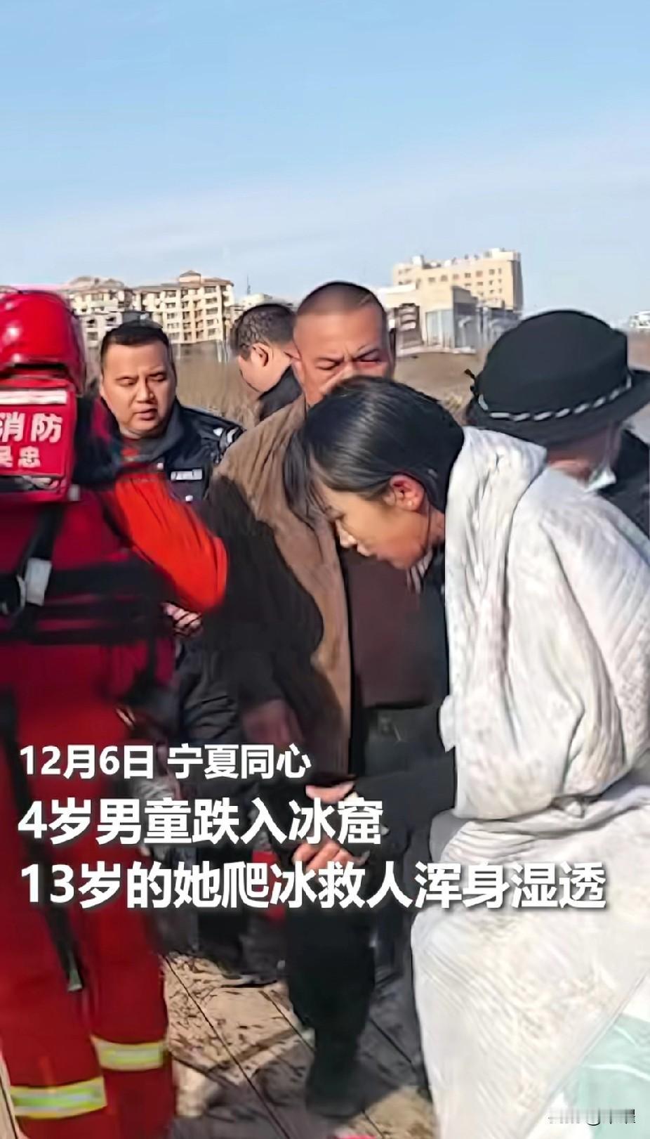 13岁的她,爬冰 救下掉入冰窟的4岁孩子, 消防车赶到后,她默默的骑车离开。 男童家长全网寻人,登门道谢。 听孩子叙述完事情的经过后,女孩儿的妈妈哭了。 妈妈流泪是因为女儿勇敢,很激动,骄傲。 更是因为害怕,万一自己的女儿出意外了。 做了妈妈后才知道,只有妈妈从不希望自己是个英雄。 请把最高的敬意,奖励,赞美给她吧!