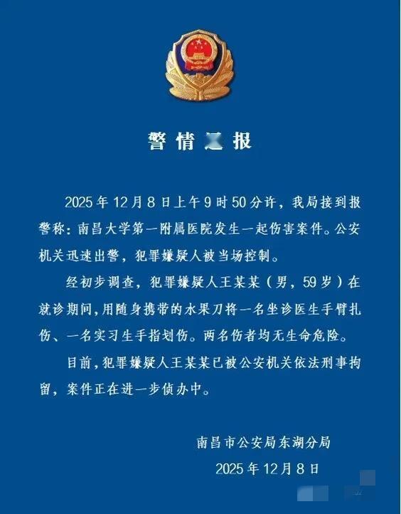 我看到个新闻,差点没把手机惊掉。 江西南昌医院发生一起伤人事件!59岁王某带一把30厘米的水果刀,划伤坐诊医生手臂和一名实习生手指! 实习医生好不容易才考上研究生,读了半年,右手肌腱断裂,行肌腱修补!两个医生说不定都做不了手术了! 想到了眼科医生陶勇,9月份广中医被砍进ICU的医生……! 大家怎么看这件事?持刀事件 医院砍人事件 南昌伤人事件 南昌医疗事故