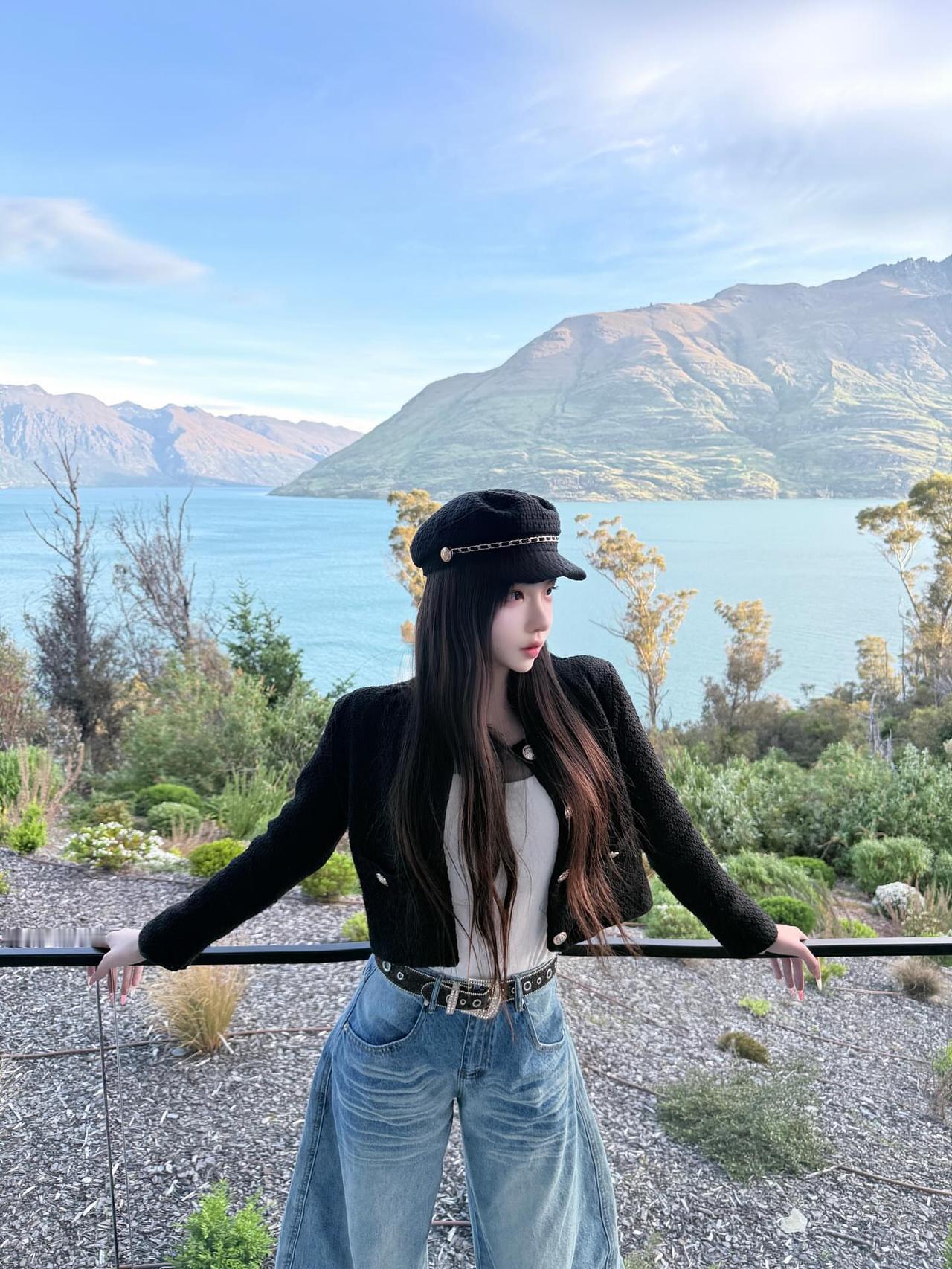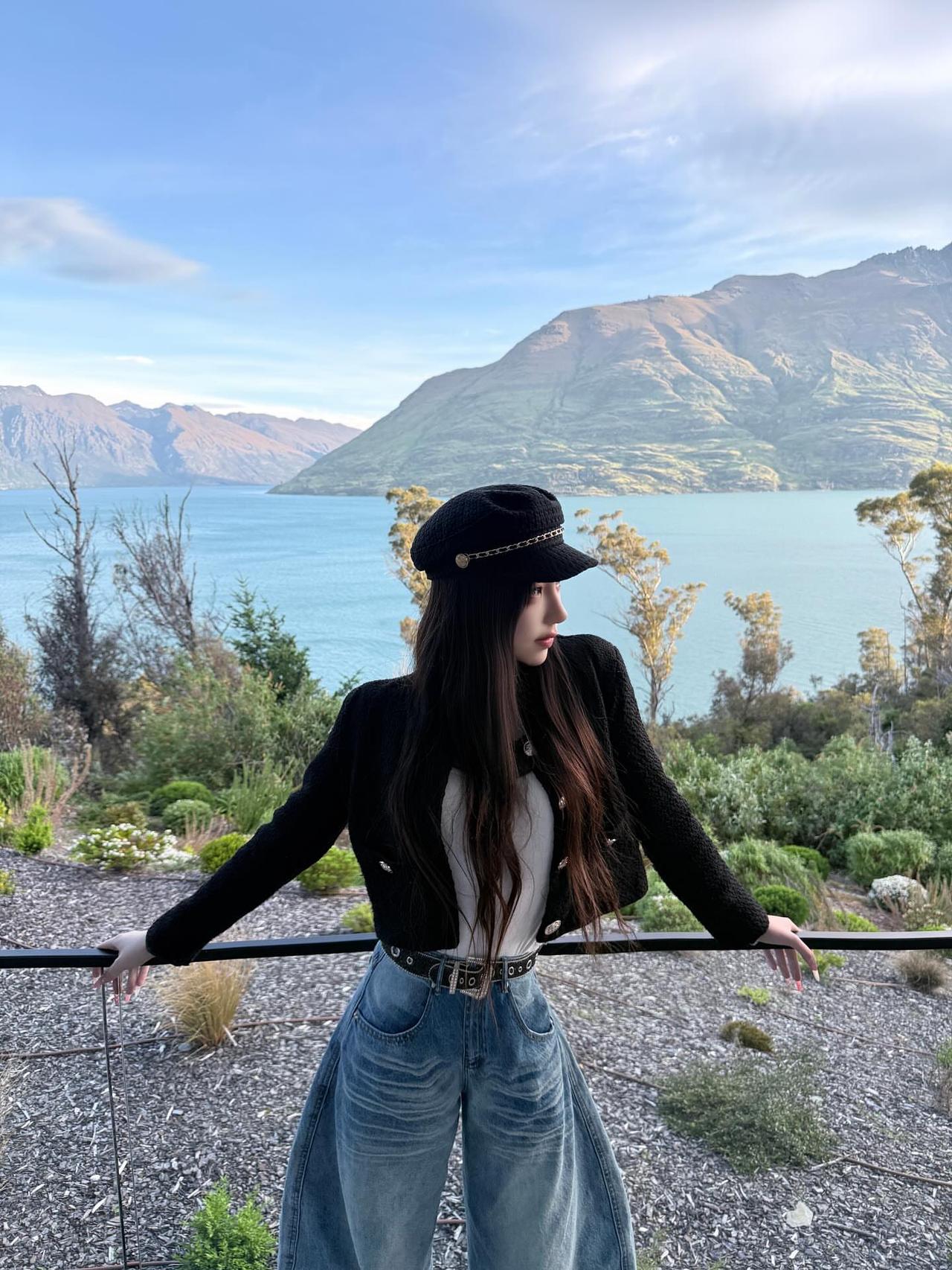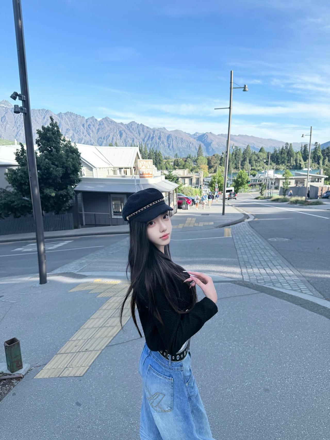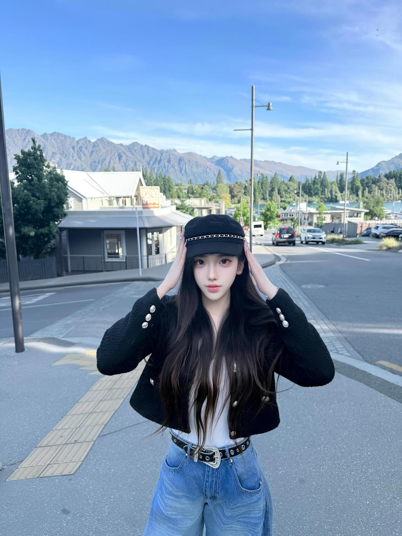 在山脚下,少女与街景的浪漫邂逅城市街头少女 街角里的美女