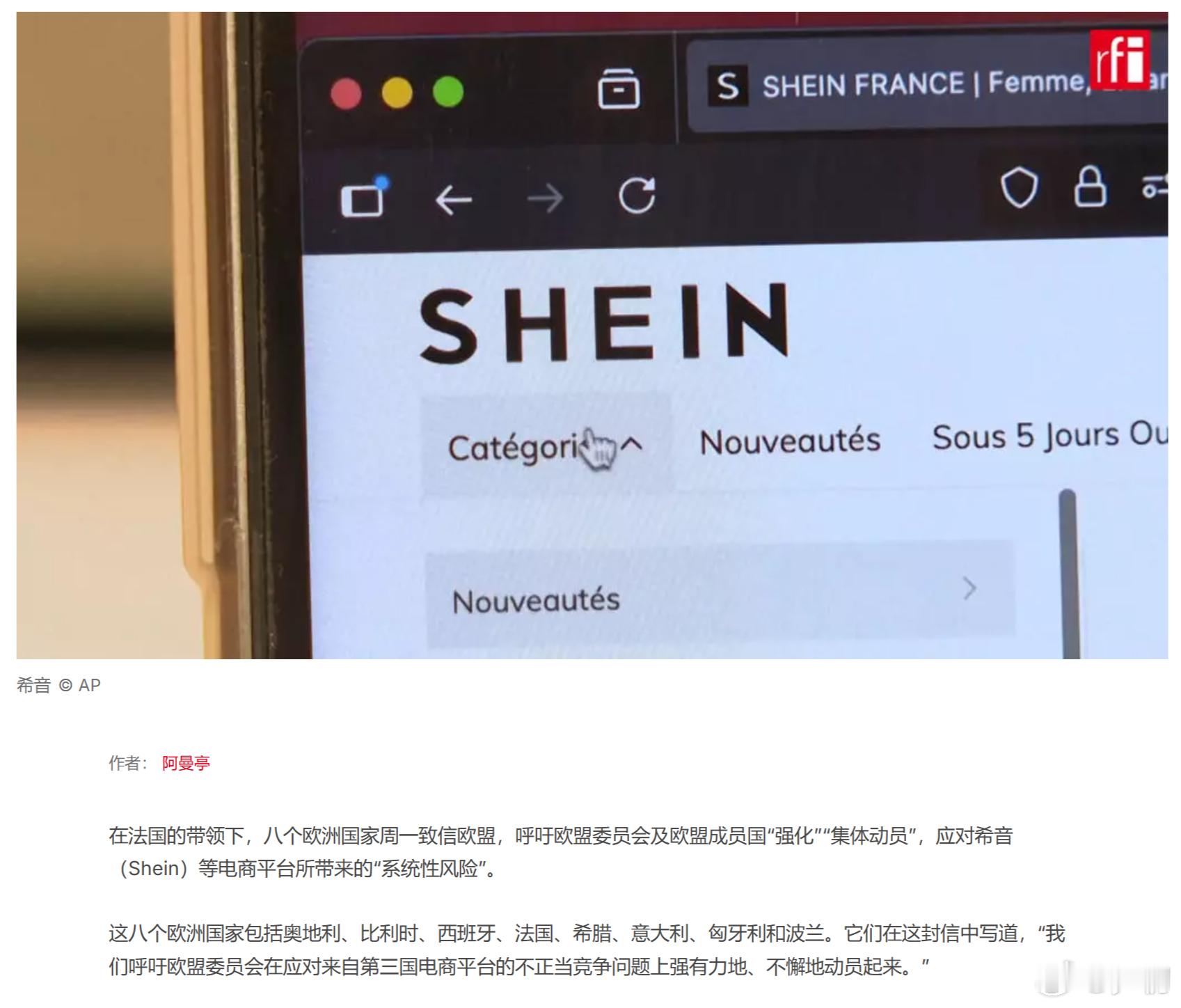 在法国的带领下,八个欧洲国家周一致信欧盟,呼吁欧盟委员会及欧盟成员国“强化”“集体动员”,应对希音(Shein)等电商平台所带来的“系统性风险”。就是一条养不熟的“法斗”......