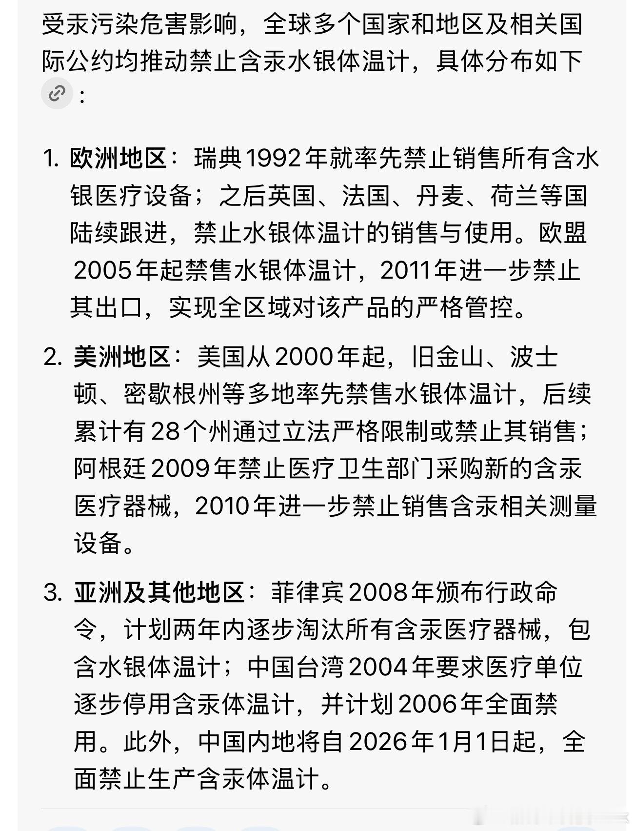 水银体温计血压计明年起禁产现在不含水银的体温计也才十几块,确实应该停止使用有危害风险的水银体温计了,其他地区很多年前就禁止了。