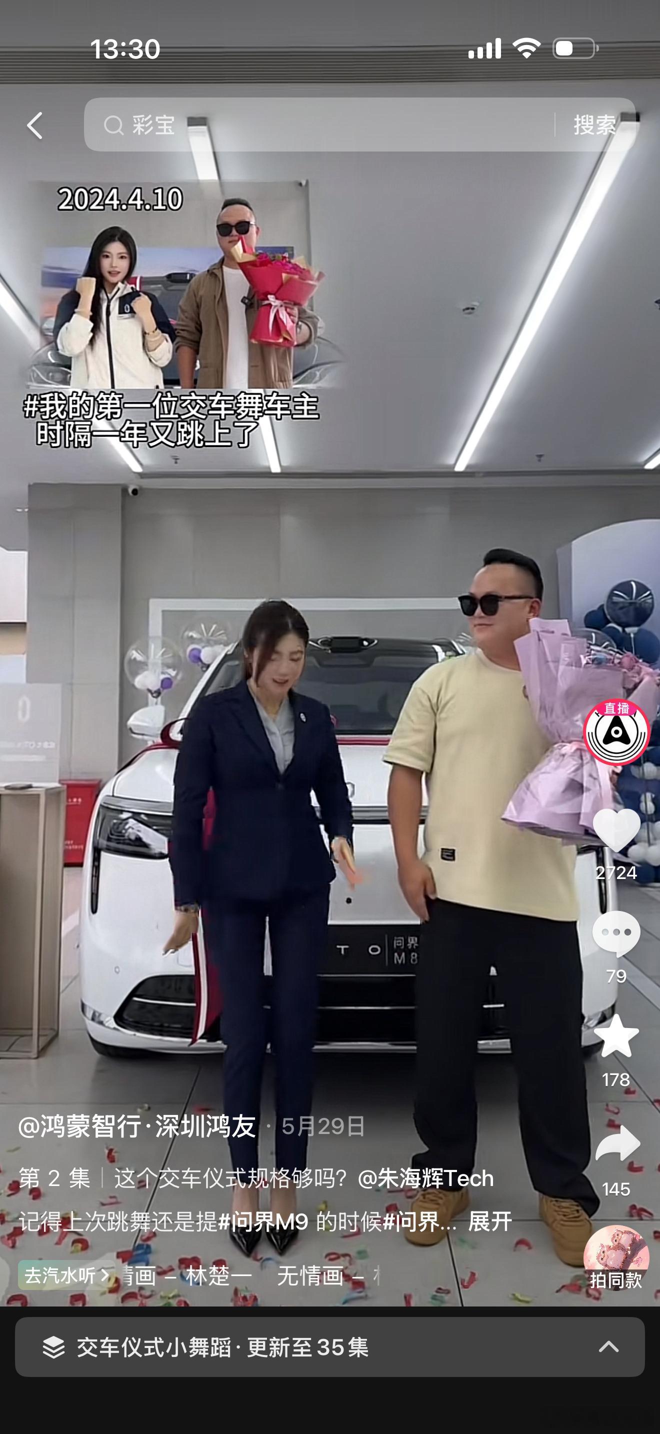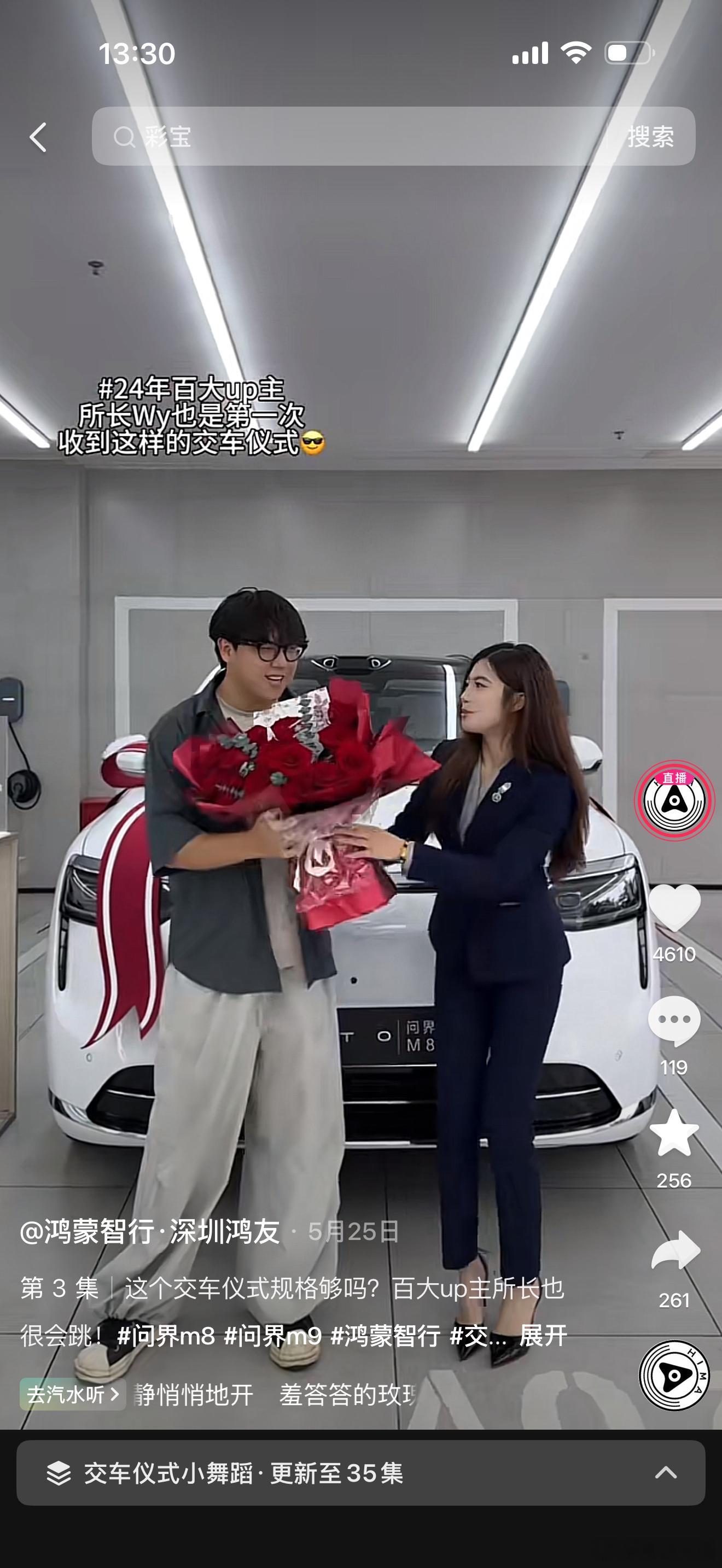这是我目前见过的最好的汽车品牌方账号,主播好像叫彩宝,能跳舞,能拍产品短视频,能交付,能跳交付小舞蹈,能直播聊买车政策。短视频构思极佳,意境极佳,画面极佳,自然流极佳。彩宝懂产品,懂政策,懂短视频,懂抖音观众,能跳舞,有身材,有颜值。鸿蒙智行这个账号有东西,有的品牌直播间是为了任务,有的直播间真的呈现了美好和向往感。电动兄弟
