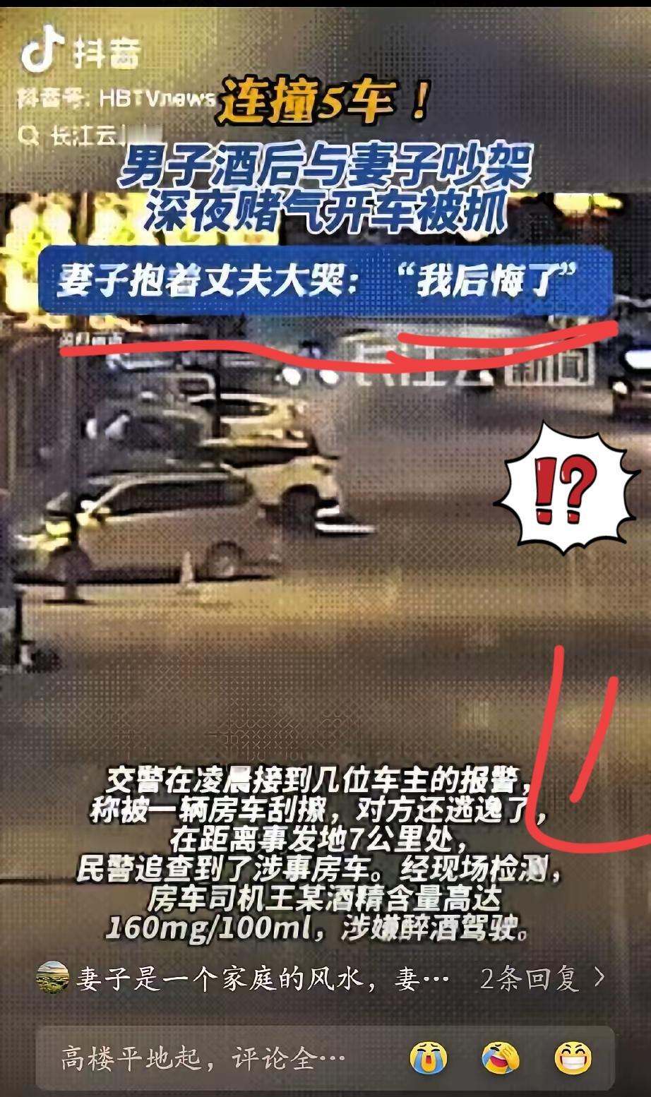 一场露营闹到刑拘收场,这对夫妻用教训告诉我们:夫妻相处,“当众留面”才是底线! 妻子当众连环数落让丈夫下不来台,丈夫拿醉驾逃逸发泄情绪,看似是面子之争,实则是情商和责任双缺失。男性本就看重社交场合的尊严,当众揭短堪比感情炸弹,而用酒精和方向盘赌气,更是把自己和无辜者都拖进泥潭。 家不是争对错的战场,在外人面前给伴侣留余地,从不是妥协而是智慧。关起门来再掰扯是非,远比当众撕破脸体面,也能避免情绪失控酿大祸。 你觉得夫妻间有矛盾,该当场解决还是回家沟通?遇到当众被伴侣拆台,你会怎么应对?来评论区聊聊~