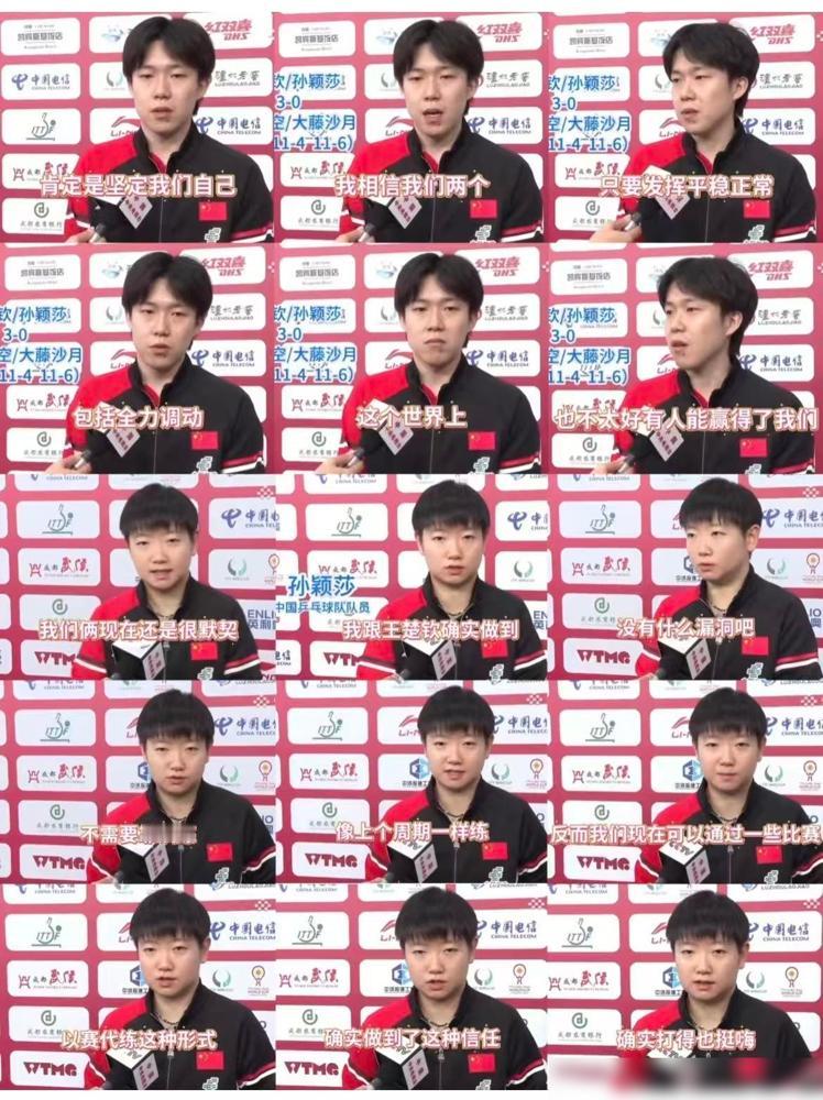 王楚钦这次混团采访有了新变化,真的很奇怪,他这次混团的采访,连续三次采访,都这么称呼莎莎:我和莎莎孙颖莎,我和孙颖莎莎莎! 我先说发生啥:就是在混团的采访里,王楚钦提到孙颖莎的时候,连续三次用了这种叠着叫的方式,把昵称和全名混在一起念。 我当时看着都愣了一下,感觉像他自己也在找顺口的叫法。 最戳我的是,他每次说得特别自然,好像已经习惯一样。 我觉得他可能是想礼貌地带上全名,但嘴又条件反射跑向“莎莎”,于是就变成这个神奇组合。 还有一种可能是,他怕说不全,被大家听成别人名字,所以干脆两个一起喊。 我自己听着倒挺可爱,像一种他们之间独有的小节奏。 关键是这个叫法一重复,大家反而更关注他们的搭档氛围了。 说不准以后球迷一激动,也要开始跟着念莎莎孙颖莎、孙颖莎莎莎。 最后忍不住感慨一句:这可比网友们想出来的那些外号还顺嘴。