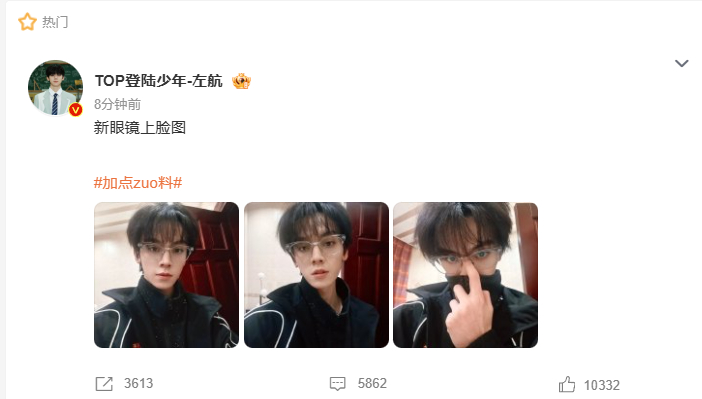 左航配新眼镜的动 态引发关注,新眼镜在轮廓与材质上的选择凸显审美,与个人气质契合,展现出清爽利落的状态。细微变化强化公众记忆点。左航换眼镜了左航配新眼镜了