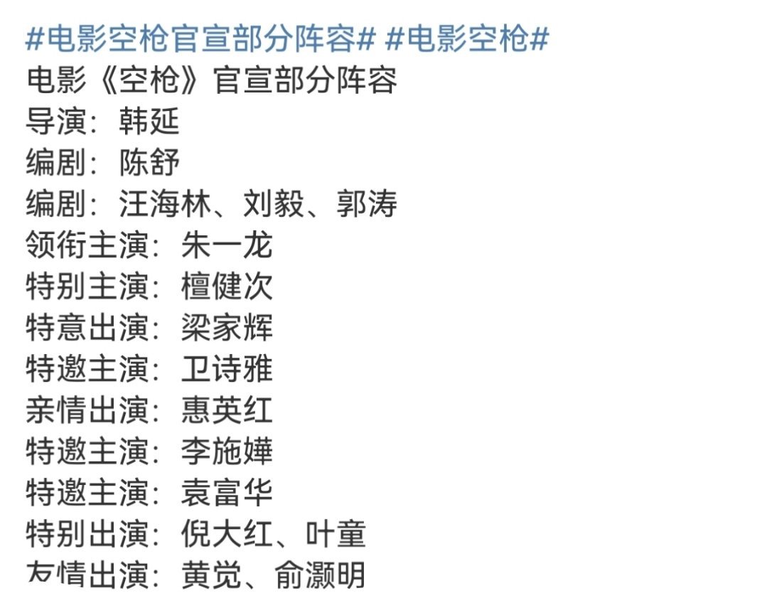 电影《空枪》官宣特别主演 :檀健次 期待檀健次