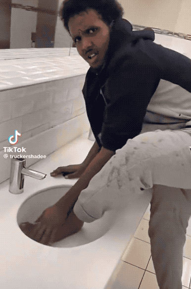 索马里人在美国:直接在洗手池里面洗脚丫子!一个美国人走进加油站的洗手间,看到另一个索马里人刚刚在水槽里洗了脏脚。但是网上还有许多索马里人辩护称,这是穆斯林在祷告前要做小净(Wudu),其中包含洗脚。在一些国家、清真寺或机场,都会设有“洗脚区”;但美国普通加油站没有这种设置,所以穆斯林可能只能用水槽完成仪式。对他本人而言,这不是不卫生的行为,而是宗教义务。