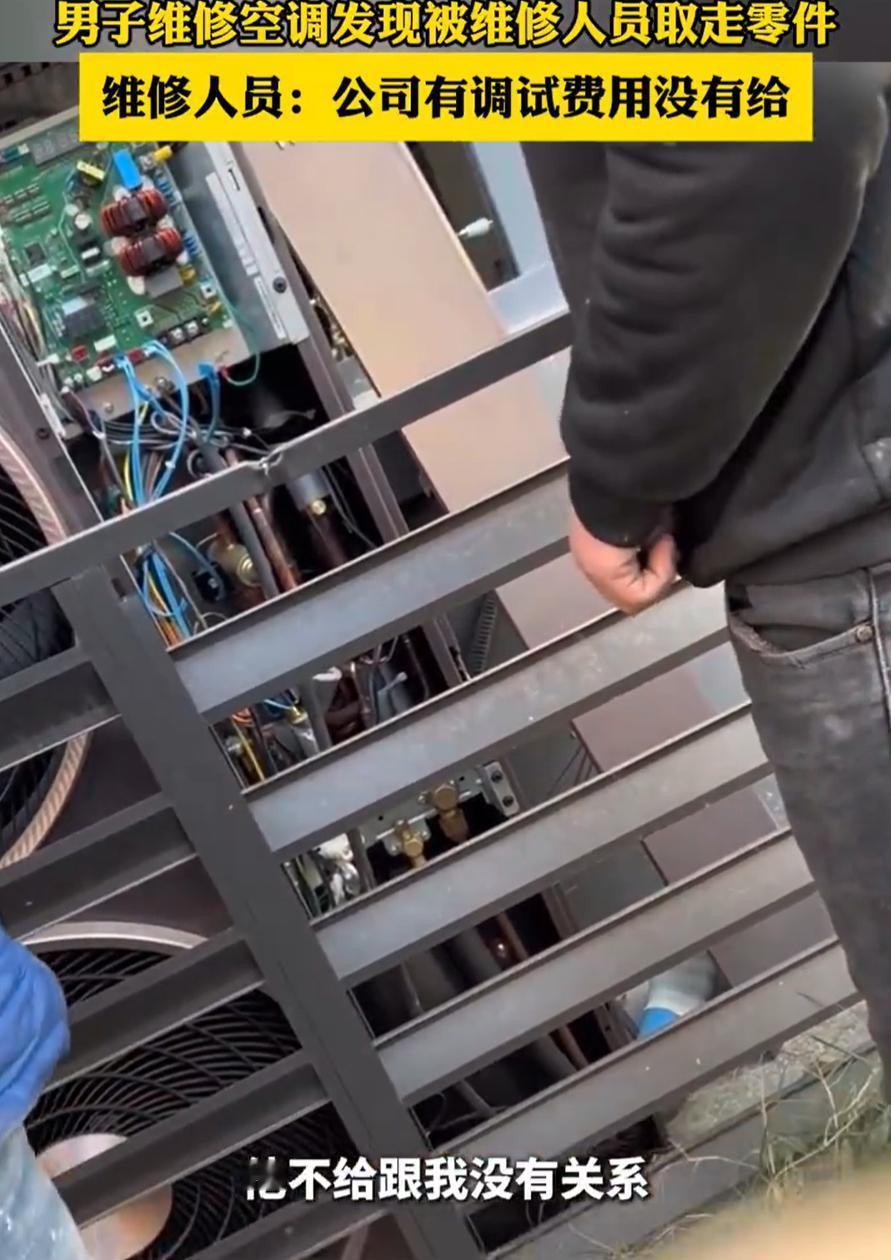 离谱!江苏。男子一年前全款买了台空调,今年夏天装好,本来用了半年还不错,可天气刚冷下了,安装师傅却找上门,说安装的钱公司一直没给他结,然后让男子给他结算,男子拒绝后,安装师傅竟然偷偷拆走零件,导致男子一家挨冻 男子介绍,对方开始找上门时他也不理解,基础安装费早就交给了卖空调的销售,装的时候因为加长了管子,额外的那部分钱也是现场亲手塞到安装工手里的,怎么还能有拖欠? 更离谱的还在后头。原来,就在前阵子,这位师傅上门做例行维护时,竟然一声不响,把空调外机里一个关键零件给拆走了。当时老哥还没在意,直到天气彻底冷下来,想开制热,才发现空调成了摆设,一家老小在屋里冻得直哆嗦。再一查,才知道是零件被拆了 双方一理论,火气都上来了。拆零件的师傅也挺委屈,说公司一直没给他结算空调的调试费用,他没办法,才想了这么个招,意思是你想用空调,就得让公司把钱结了。他还撂下一句话,说那些安装用的材料本来就该归他 男子一听这话,肺都要气炸了。他觉得自己全款早付清了,东西就是自己的,你私下拆走零件,这跟偷有什么区别?品牌方和安装工之间的纠纷,凭什么转一圈,让已经付了钱的消费者在中间受这个罪? 其实从这件事往外看,问题其实不在空调,而在服务链条。很多家庭买大件,都图一个省心,愿意为品牌付钱,就是冲着稳定的体系和有保障的售后。可现实中,销售、安装、外包团队之间的账一旦算不明白,冲击的往往是普通用户。消费者付的不是一台机器的钱,付的是一整套服务的秩序。这个秩序如果乱了,设备再好也不稳当 这事也提醒一个现实,买大件时,大家越来越不关心品牌吹得多响,更在意售后到底靠不靠得住。大多数人不是不愿意承担合理的费用,怕的是说好的一次性付清,后面还不断冒出莫名其妙的收费,甚至出现拆零件这种让人心里发冷的操作