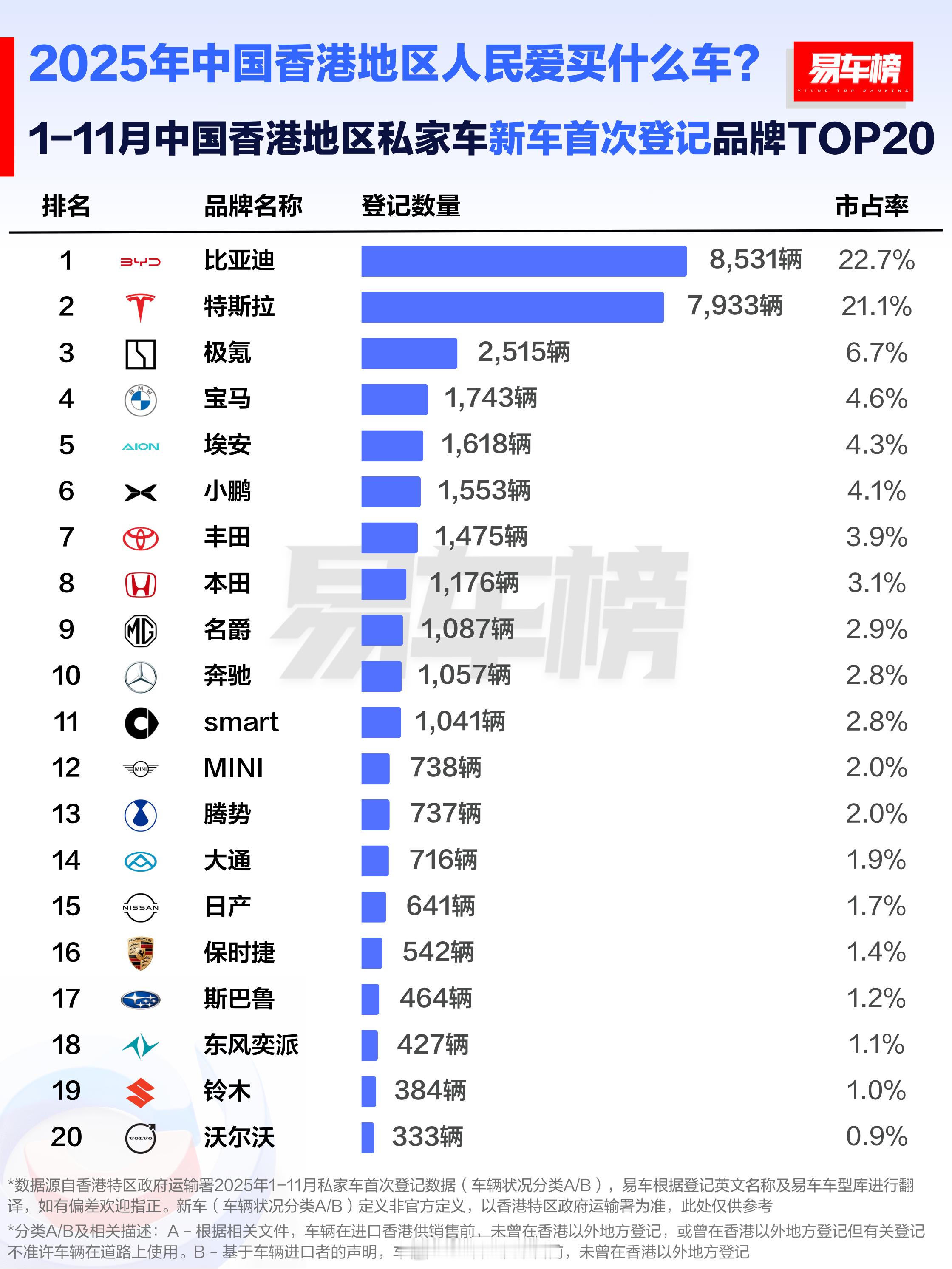 以前香港最爱买丰田,现在香港最爱买比亚迪和特斯拉。