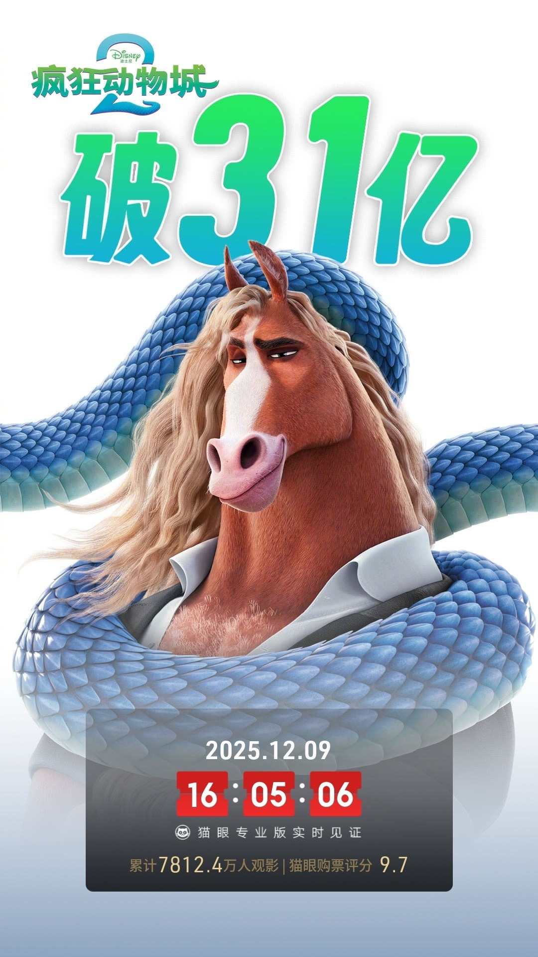 疯狂动物城2总票房破31亿据猫眼专业版数据,电影《疯狂动物城2》上映14天, 总票房破31亿