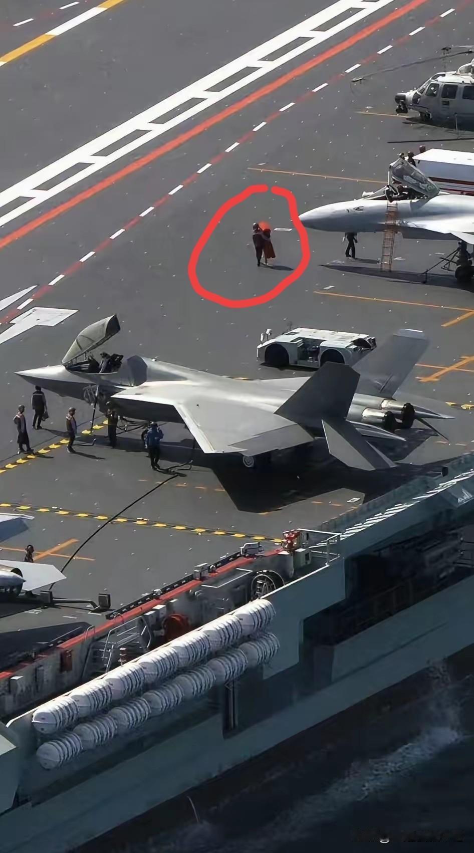 有没有大神知道,福建舰甲板上面,画红圈的工作人员,拿的什么?