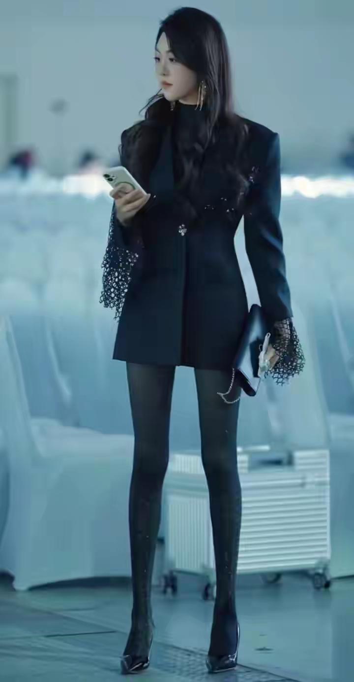 优雅黑裙,闪耀职场,自信步伐!漂亮高挑气质的女模特!