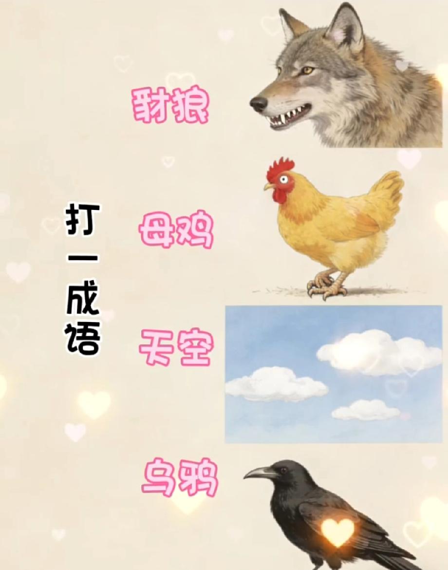 全网都在猜的“豺狼母鸡天空乌鸦”成语,我想破头都没答案,评论区有大神能救我吗?