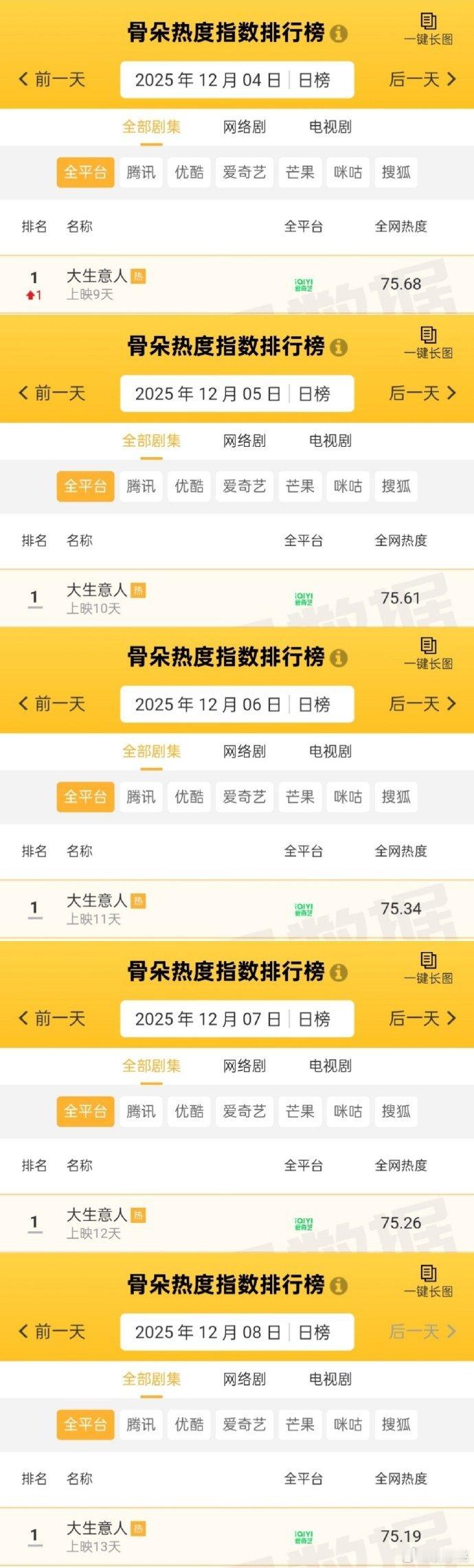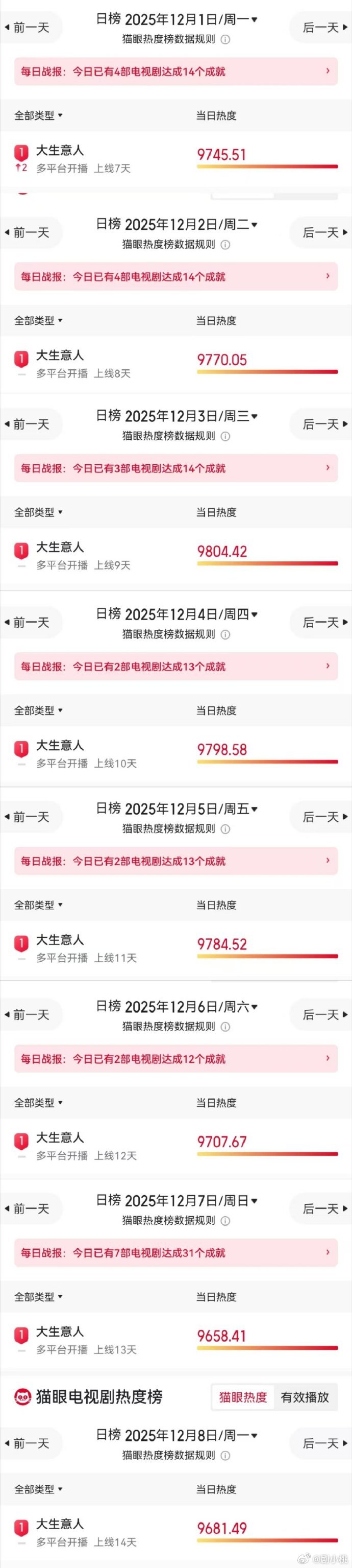 陈晓新剧不语只一味登顶TOP1 《大生意人》的走势真的超健康,没有忽高忽低的波动,一路平稳上涨慢慢积累热度,是扎实的口碑发酵模式大生意人