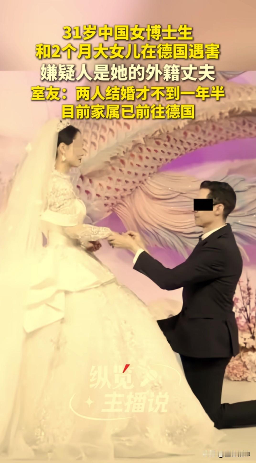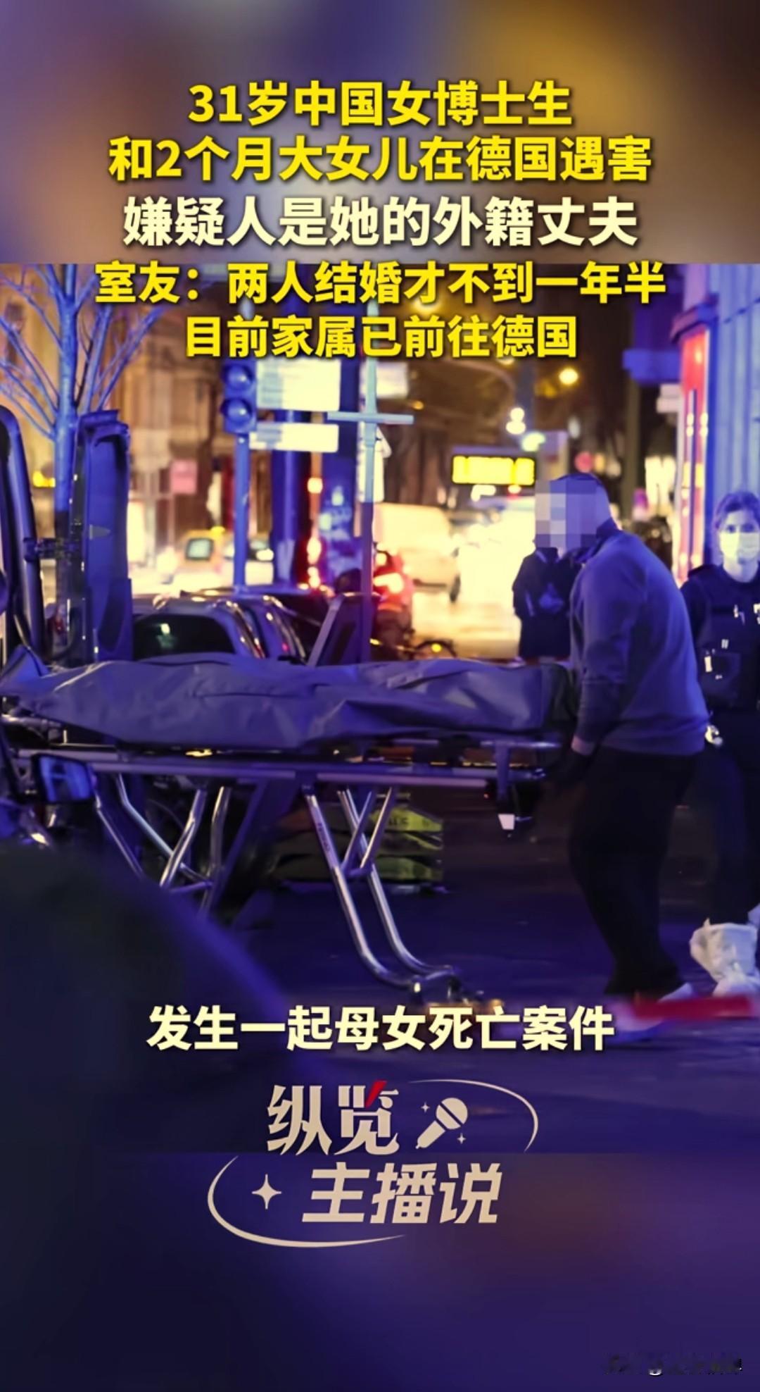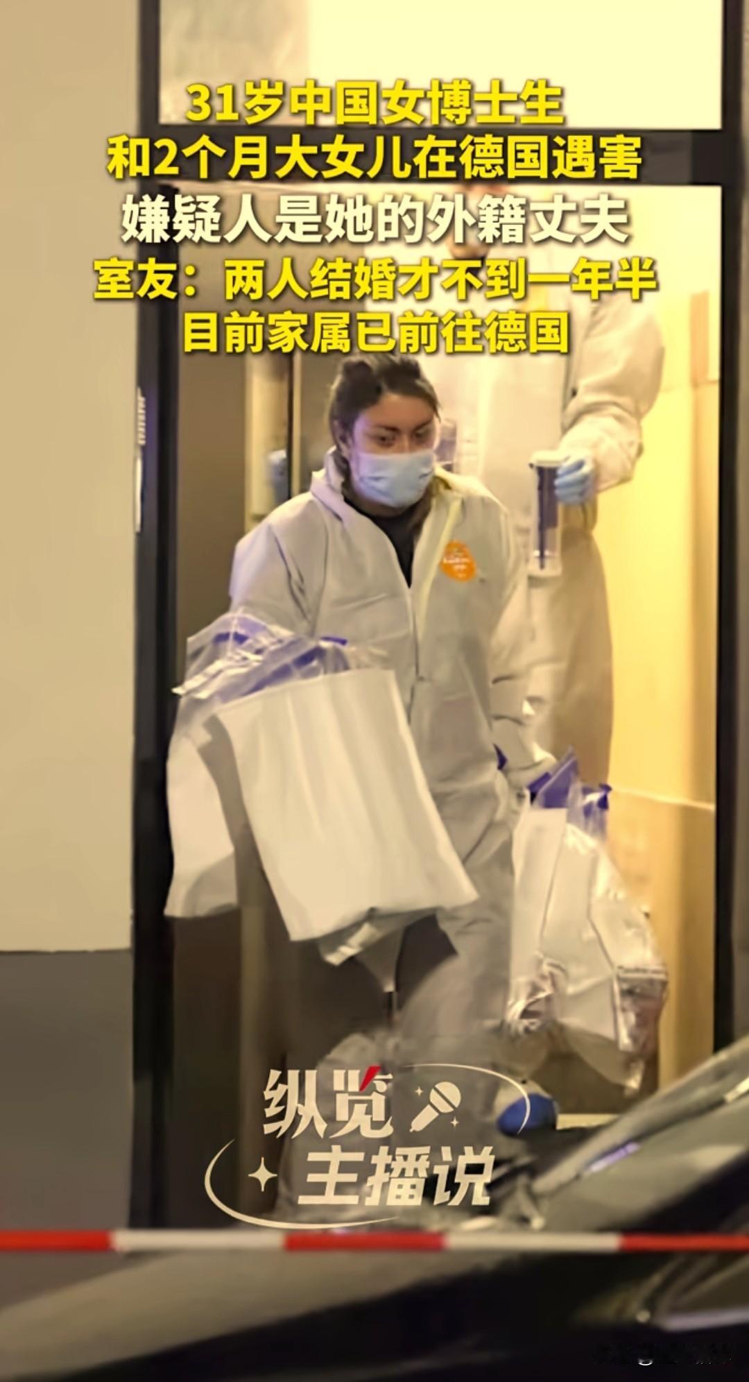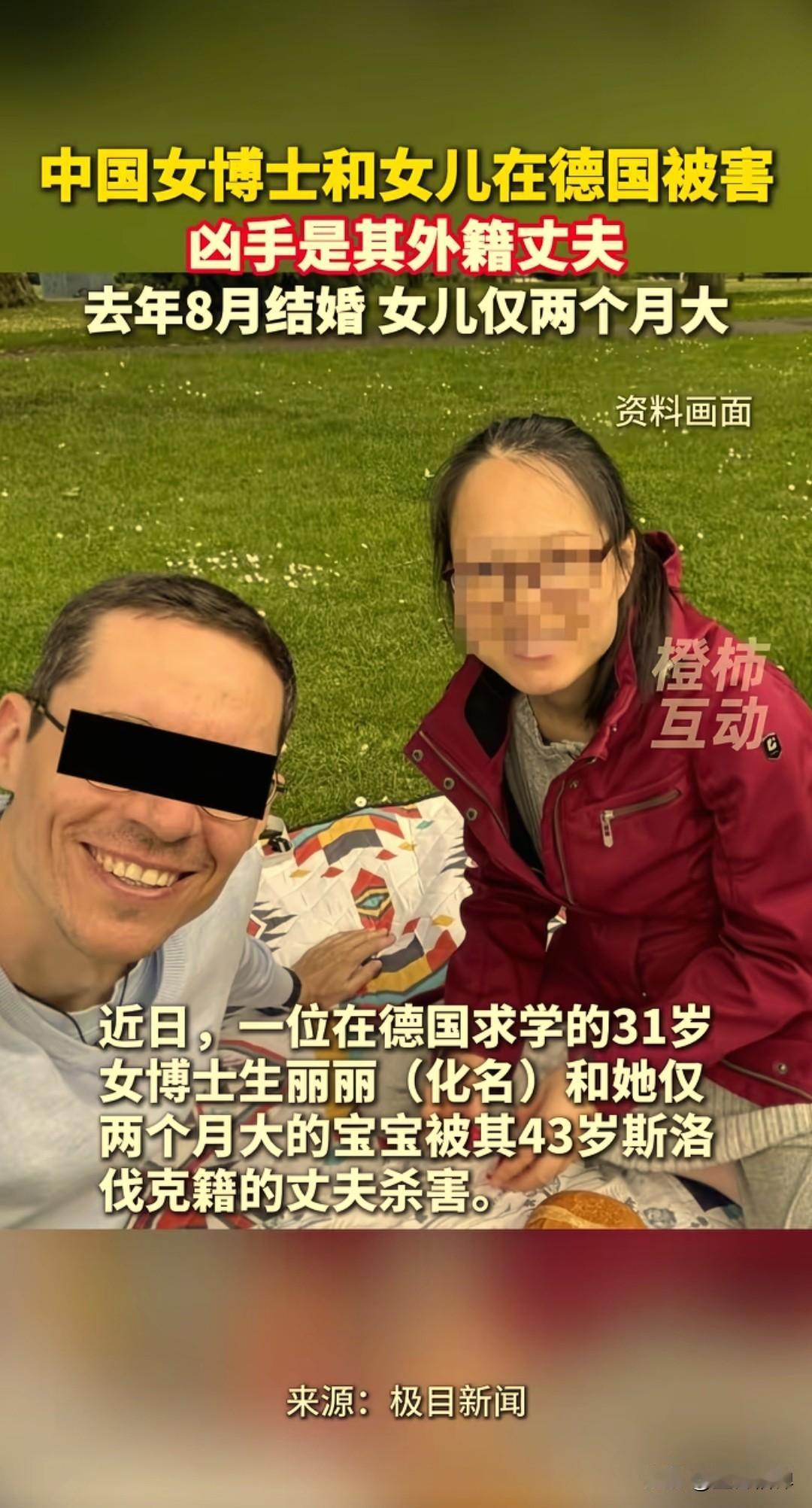 在德国留学的31岁中国女博士生和她两个月大的女儿不幸遇害,嫌疑人竟然是他43岁的外籍丈夫,两人结婚才不到一年半时间,目前家属已前往德国。 据德国警方通报和纵览新闻、极目新闻等多家媒体报道:2025年11月29日,在德国杜塞尔多夫的一处公寓内发生了一起刑事案件,一名31岁的中国女博士生及其两个月大的女儿遇害。 而嫌疑人是遇害人的丈夫,43岁,斯洛伐克籍,是一名博士后研究人员,警方在屋内发现了刀具和一把斧头。嫌疑人当场承认杀害了妻女,并在行凶后有过自残行为,是他本人拨打了求救电话。 有邻居表示案发前曾听到房内传出激烈争吵声,警方在其家中搜出了精神药物,嫌疑人因重伤在医院治疗,警方对其签发逮捕令,案件在调查中。 遇害女博士来自中国某沿海省份,本科及硕士均在国内就读,成绩优异,2020面通过国家公派项目赴德国攻读博士学位。 同学和室友说她家境普通,学习非常刻苦,经常拿奖学金,性格温和,从未与人发生过冲突。 她和丈夫在硕士阶段相识,男方当时没交换生,后在德国确定关系,于2024年8月回国结婚,案发时婚姻关系仅维持一年半时间。 由于嫌疑人因重伤尚未完成正式询问,警方初步判断其涉嫌故意杀人罪,最终如何定罪将等后续调查情况。 遇害女生的父亲已经动身前往德国,其母亲和叔叔也在紧急办理签证,她的大学同学已自发筹集资金,资助其父母赴德国处理后续事宜。
