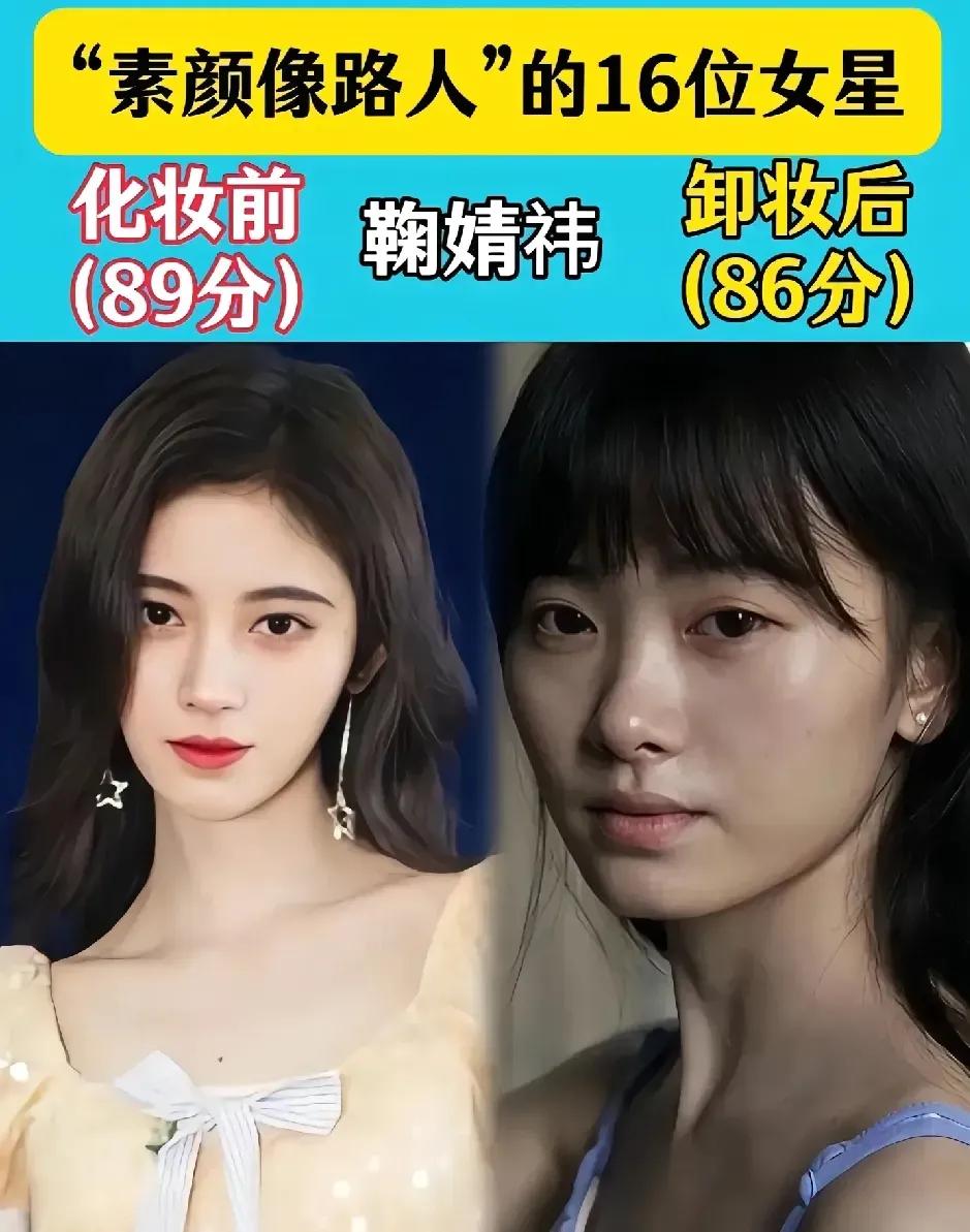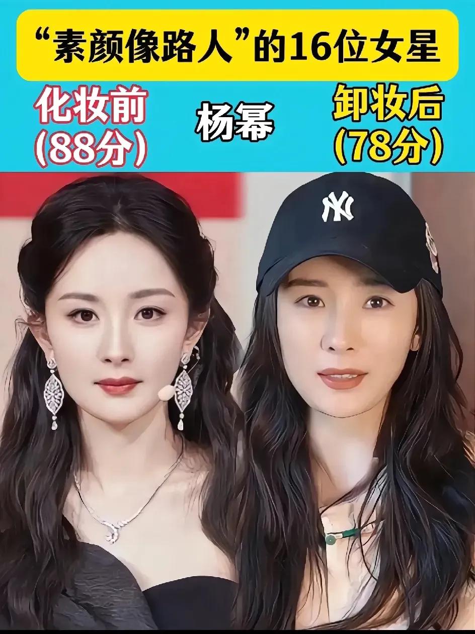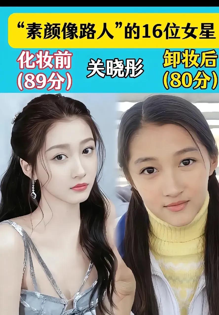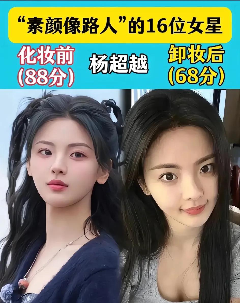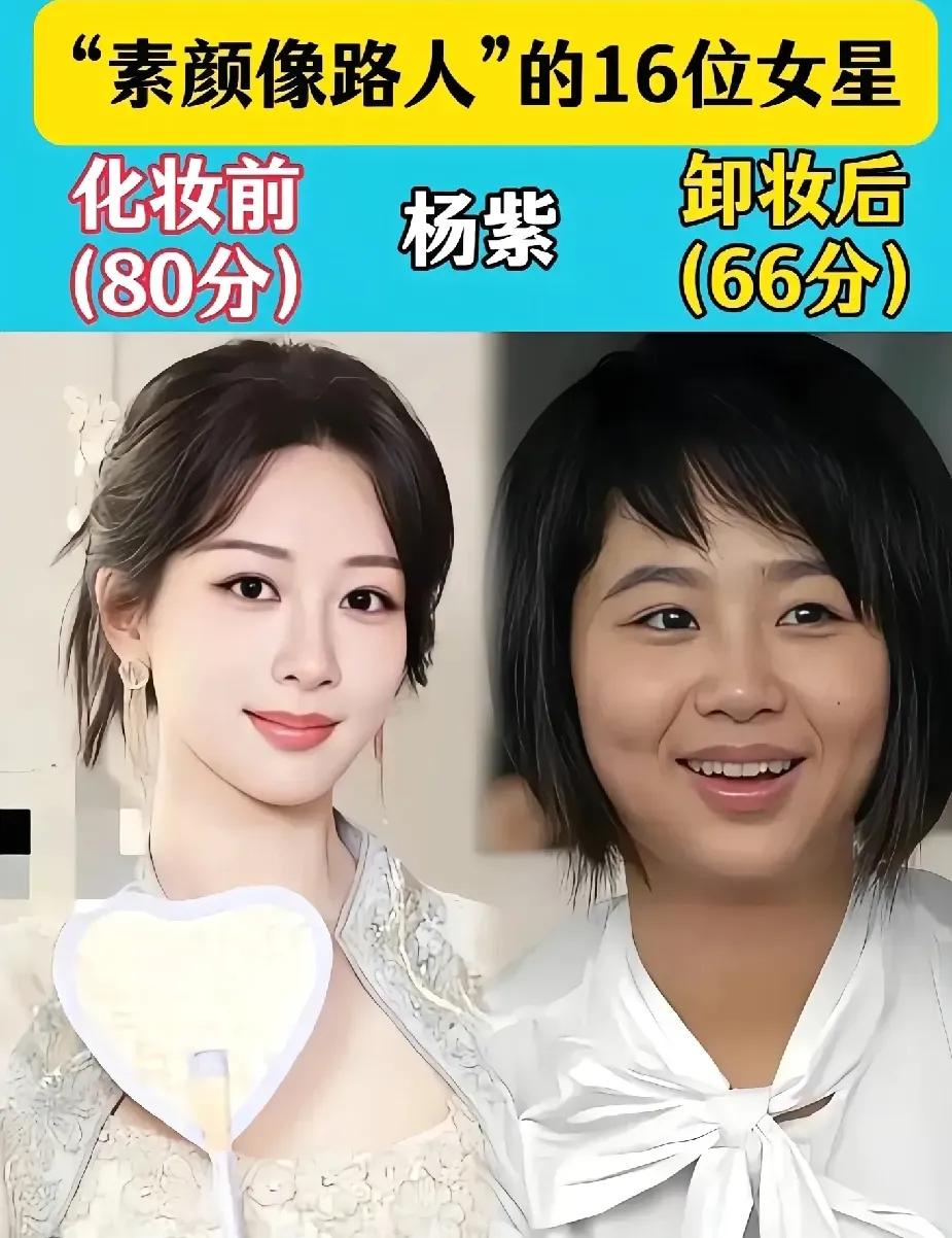 卸妆后不忍直视的赵丽颖。 卸妆后不忍直视的关晓彤。 卸妆后不忍直视的杨紫。 卸妆后不忍直视的贾静雯。 卸妆后不忍直视的戚薇。 卸妆后不忍直视的鞠婧祎。 卸妆后不准直视的吴宣仪。 卸妆后不忍直视的李沁。 卸妆后不忍直视的杨超越。 这些女明星们卸掉妆容后,模样真的是不忍直视,难怪她们在镜头前都会一直带妆上阵,毕竟卸妆后的样子和普通人没有什么区别,甚至有的还不如普通人,就比如说贾静雯,化妆后她完全就是女神的模样,但是卸妆后的她脸上皱纹清晰可见,差别还是挺大的。