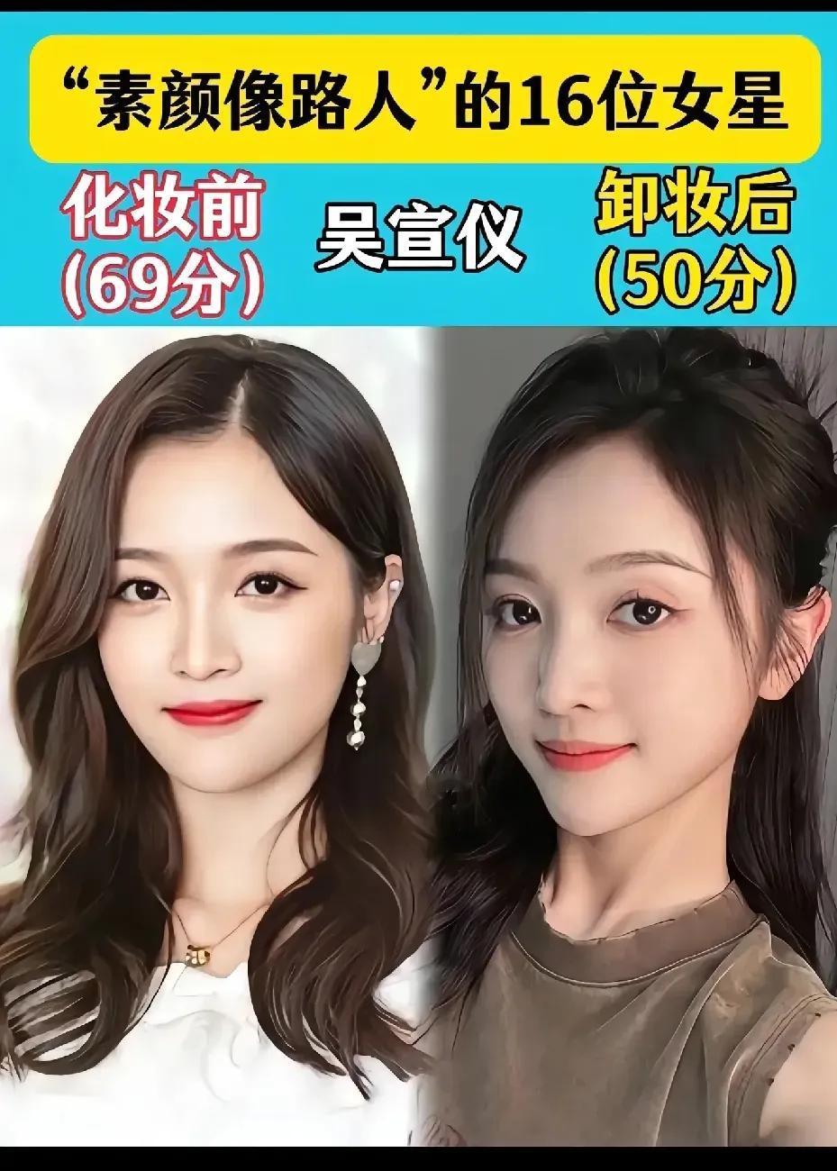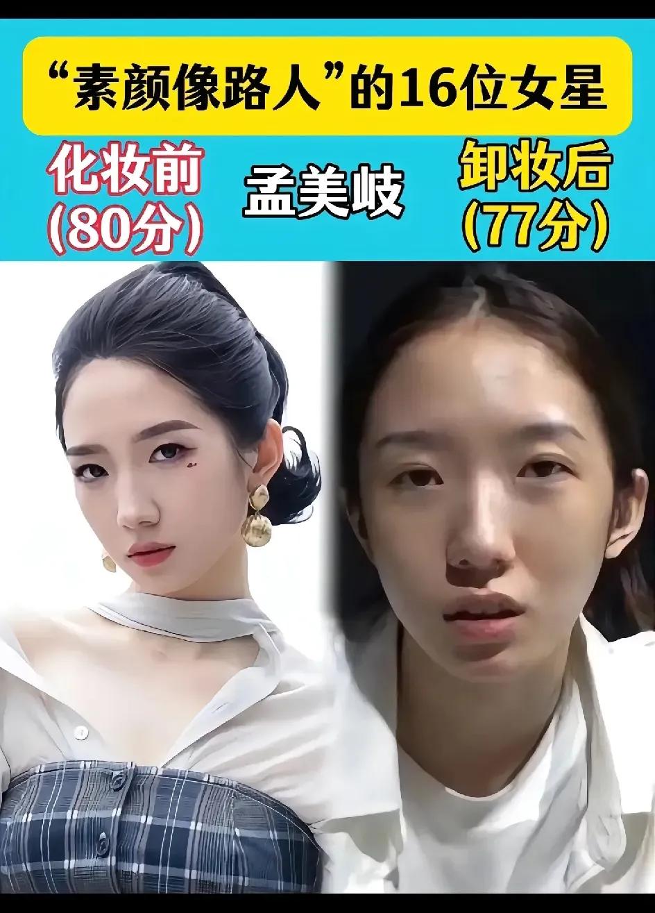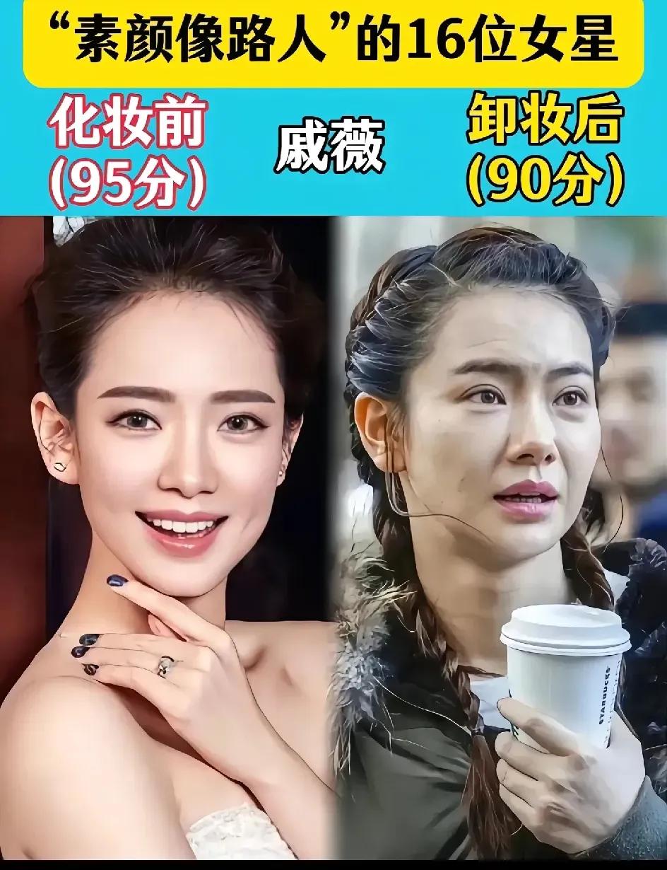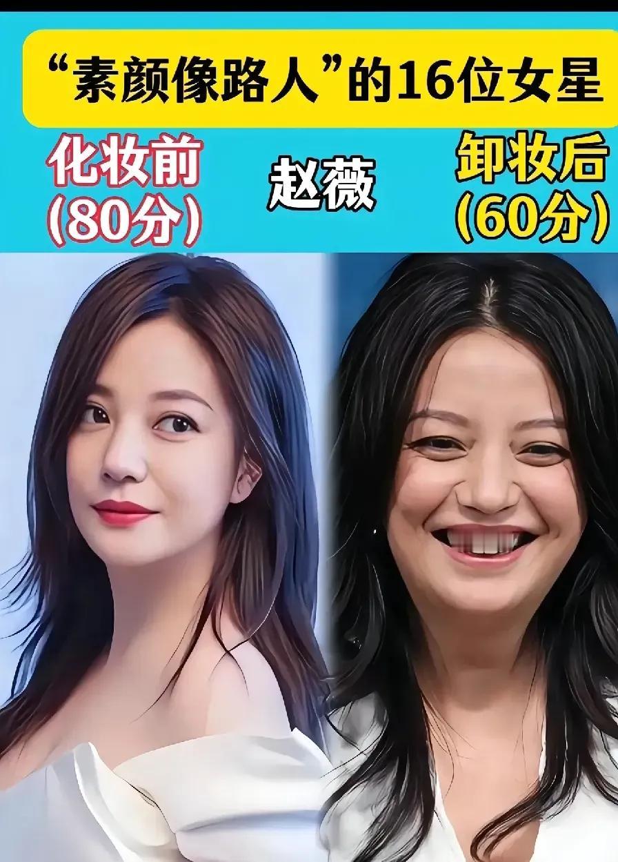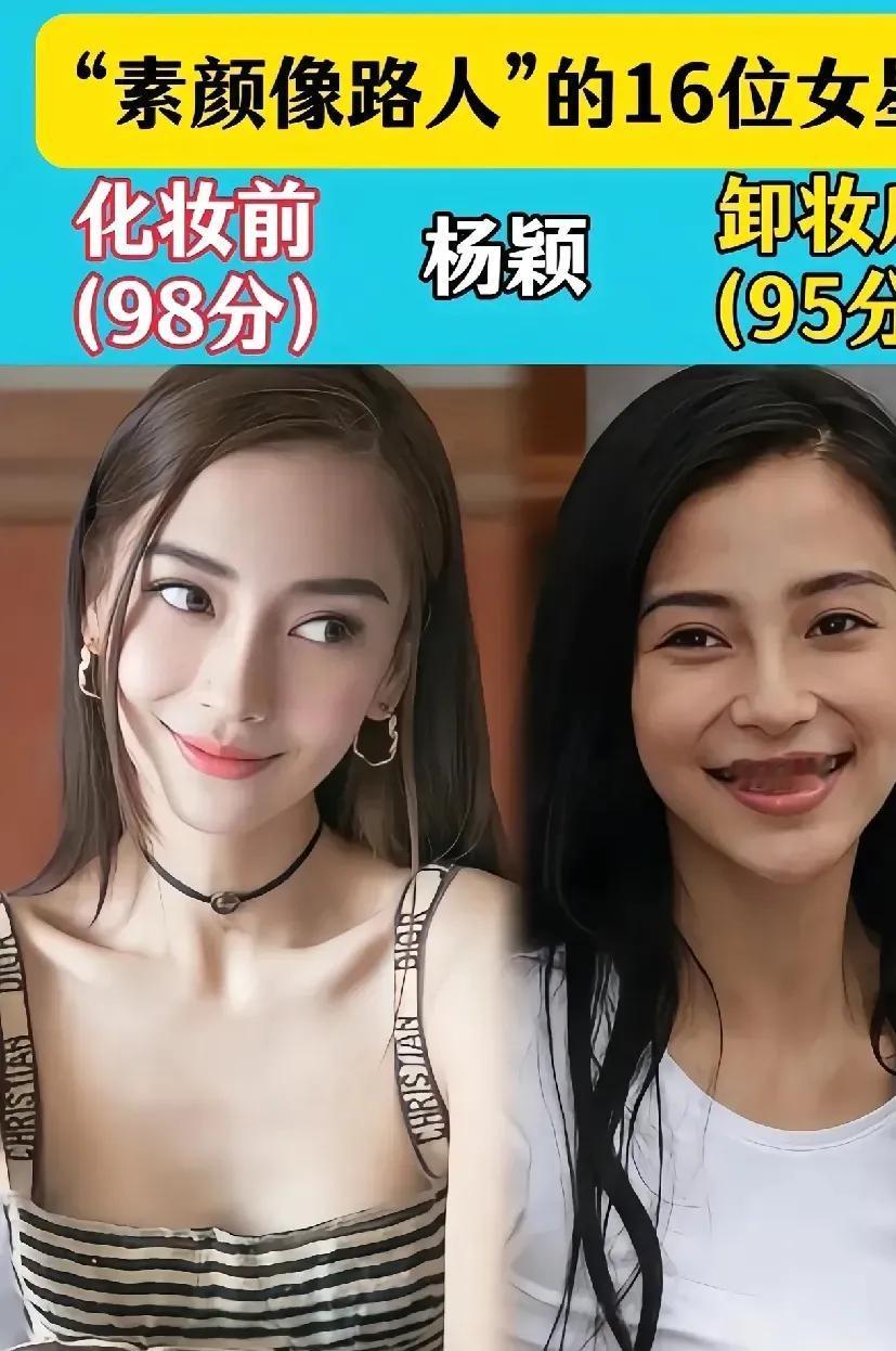 卸妆后不忍直视的赵丽颖。 卸妆后不忍直视的关晓彤。 卸妆后不忍直视的杨紫。 卸妆后不忍直视的贾静雯。 卸妆后不忍直视的戚薇。 卸妆后不忍直视的鞠婧祎。 卸妆后不准直视的吴宣仪。 卸妆后不忍直视的李沁。 卸妆后不忍直视的杨超越。 这些女明星们卸掉妆容后,模样真的是不忍直视,难怪她们在镜头前都会一直带妆上阵,毕竟卸妆后的样子和普通人没有什么区别,甚至有的还不如普通人,就比如说贾静雯,化妆后她完全就是女神的模样,但是卸妆后的她脸上皱纹清晰可见,差别还是挺大的。