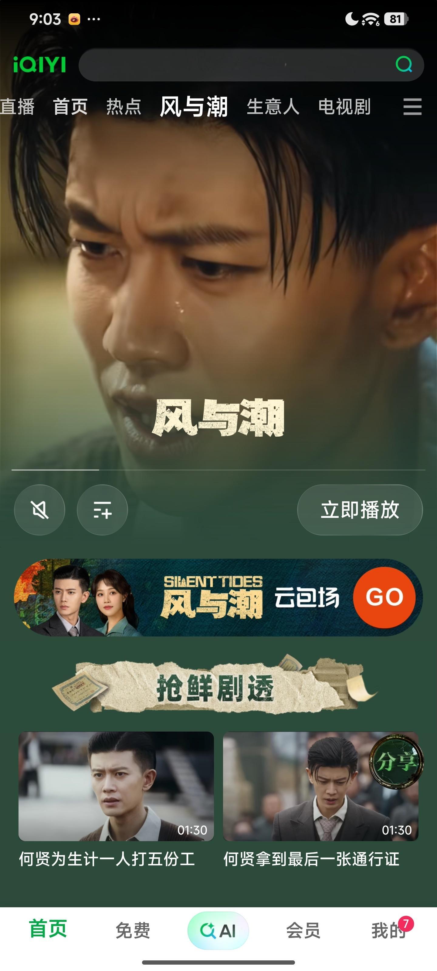 任嘉伦主演的《风与潮》今日开播了,爱奇艺平台挺有排面,还有专栏,就是这最高热度4610我有点不理解?