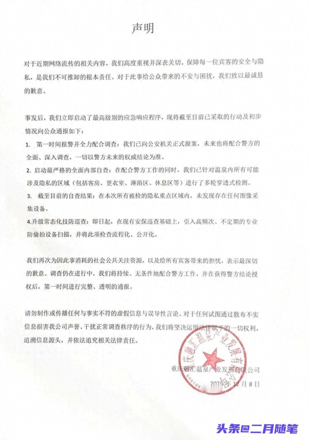 大量女宾洗澡被偷拍? 涉事温泉公司称已报警! 刷到温泉偷拍视频那会儿, 我手都抖了一下。 画面中一排排更衣柜和长凳角落贴着“融汇温泉”的标志, 但镜头角度太邪了, 分明是偷拍女性更衣的样子。 温泉方当天就报警, 并称全面检查后“没发现设备”,可谁能真的放心? 评论区一句留言让人背后发凉: “以后去澡堂, 是不是得先拆一遍摄像头?” 说这话的网友配了个苦笑表情, 字里行间全是无力。 是啊, 温泉池热气朦胧, 人声嘈杂, 谁能想到暗处可能有只眼睛? 这几年类似事件频发, 每次都是视频先爆, 商家再否认, 最后往往没下文。 信任就像温泉池上的雾气, 一吹就散—— 你解释得越急, 别人越觉得你心里有鬼! 以前总觉得泡温泉是卸下疲惫的事儿, 现在倒好, 连脱件外套都得左顾右盼! 女性安全 隐私保护 公共信任危机 社会热点偷拍事件女主 偷拍丑闻