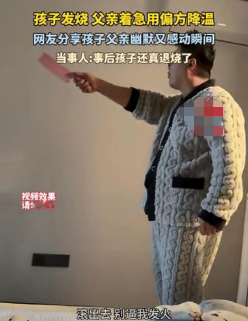 笑不活了!山西爸爸的“硬核退烧法”火出圈,拿塑料刀砍空气驱病,居然真让39.2度的娃降温了? 这哪是迷信,分明是父母面对孩子高烧时的焦虑自救!退烧药起效要30分钟到2小时,这段等待对爸妈来说比酷刑还煎熬。科学方法都用尽,看着孩子难受,总得做点什么缓解内心的无助。 爸爸的一顿猛砍,其实是在宣泄焦虑,也是给全家一个“在努力解决问题”的心理慰藉。所谓“偏方见效”,不过是药物刚好在此时发挥作用,叠加了心理安抚的效果。 为人父母,谁没在孩子生病时慌过神?那些看似荒唐的举动,藏的全是束手无策的爱。你家娃生病时,你做过最“上头”的事是什么?儿童高烧退烧 少儿退烧经验