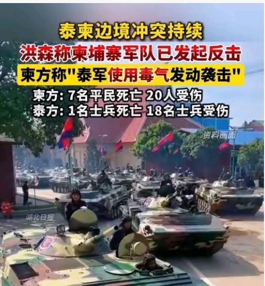 柬埔寨使用重炮全面反击,战火重燃开始扩大了战局,泰军出动战斗机轰炸,柬军用重型火箭炮洗地,洪森称柬埔寨军队已发起反击,双方伤亡人数还在攀升,双方不给特朗普面子,撕毁了美国主导的停战协议。