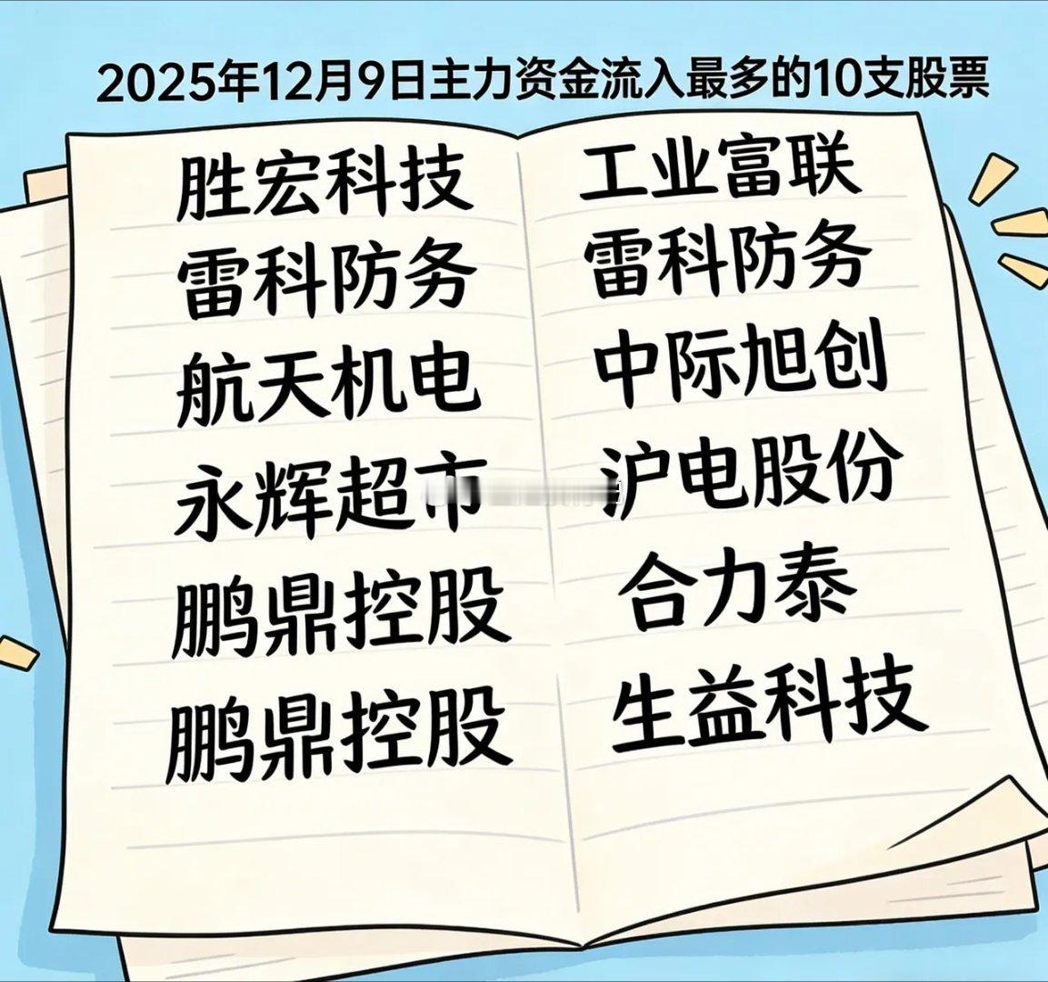 今天主力资金流入最多的10支股票,具体分析如下:1. 胜宏科技:主力资金净流入14.18亿元,当日涨幅10.81%,收盘价318.05元。胜宏科技是PCB龙头股,受益于AI算力需求的增长,其在AI算力、人形机器人等领域有业务布局,业绩高增,受到主力资金的青睐。2. 工业富联:主力资金净流入9.93亿元,涨幅7.22%,收盘价67.99元。工业富联是AI服务器领域的重要企业,其三季报显示,受益于AI业务的强劲增长,三季度营收和净利润均创下公司单季度历史新高,云服务商GPU AI服务器前三季度营收同比增长超过300%。3. 雷科防务:主力资金净流入8.06亿元,涨停,收盘价9.78元。雷科防务是商业航天概念股,涉及存储芯片、毫米波雷达、卫星导航等领域,今日龙虎榜数据显示,上榜席位全天成交11.27亿元,占当日总成交金额比例为18.62%,合计净买入8203.61万元。4. 航天机电:主力资金净流入7.83亿元,涨停,收盘价14.83元。航天机电属于中航系,业务涵盖光伏组件、汽车热系统等领域,今日换手率22.24%,市值达到212.70亿元。5. 中际旭创:主力资金净流入6.64亿元,涨幅6.32%,收盘价606.00元。中际旭创是CPO领域的全球龙头企业,随着1.6T产品的放量,其市场竞争力不断提升,受到主力资金的关注。6. 永辉超市:主力资金净流入5.79亿元,涨停,收盘价4.75元。永辉超市是零售行业的龙头企业,近期受益于大消费概念的走强,以及门店调改等举措,股价表现强势。7. 沪电股份:主力资金净流入5.2亿元,涨幅3.63%,收盘价73.85元。沪电股份是PCB行业的重要企业,在通信、汽车电子等领域有广泛的业务布局,其业绩稳定增长,受到市场的认可。8. 鹏鼎控股:主力资金净流入5.04亿元,涨幅6.05%,收盘价52.80元。鹏鼎控股是PCB龙头企业,在AI服务器、CPO等领域有较强的技术实力和市场份额,其客户包括苹果、AMD、英伟达等知名企业。9. 合力泰:主力资金净流入4.67亿元,涨停,收盘价3.78元。合力泰涉及海峡两岸、算力、电子纸等概念,今日换手率较高,其业务涵盖电子元器件、触控显示等领域。10. 生益科技:主力资金净流入4.25亿元,涨幅7.43%,收盘价63.87元。生益科技是PCB行业的领军企业之一,在5G通信、汽车电子等领域有深厚的技术积累和市场份额,其业绩表现良好,受到投资者的关注。