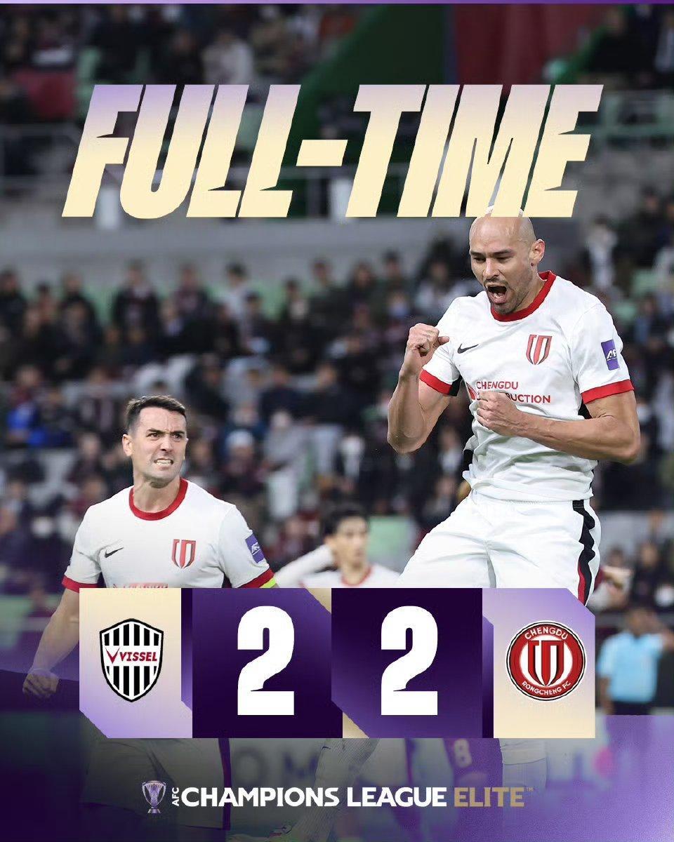 全力以赴了,客场2:2战平亚冠东亚区第一神户胜利船,看看成都蓉城队这态度,必须点