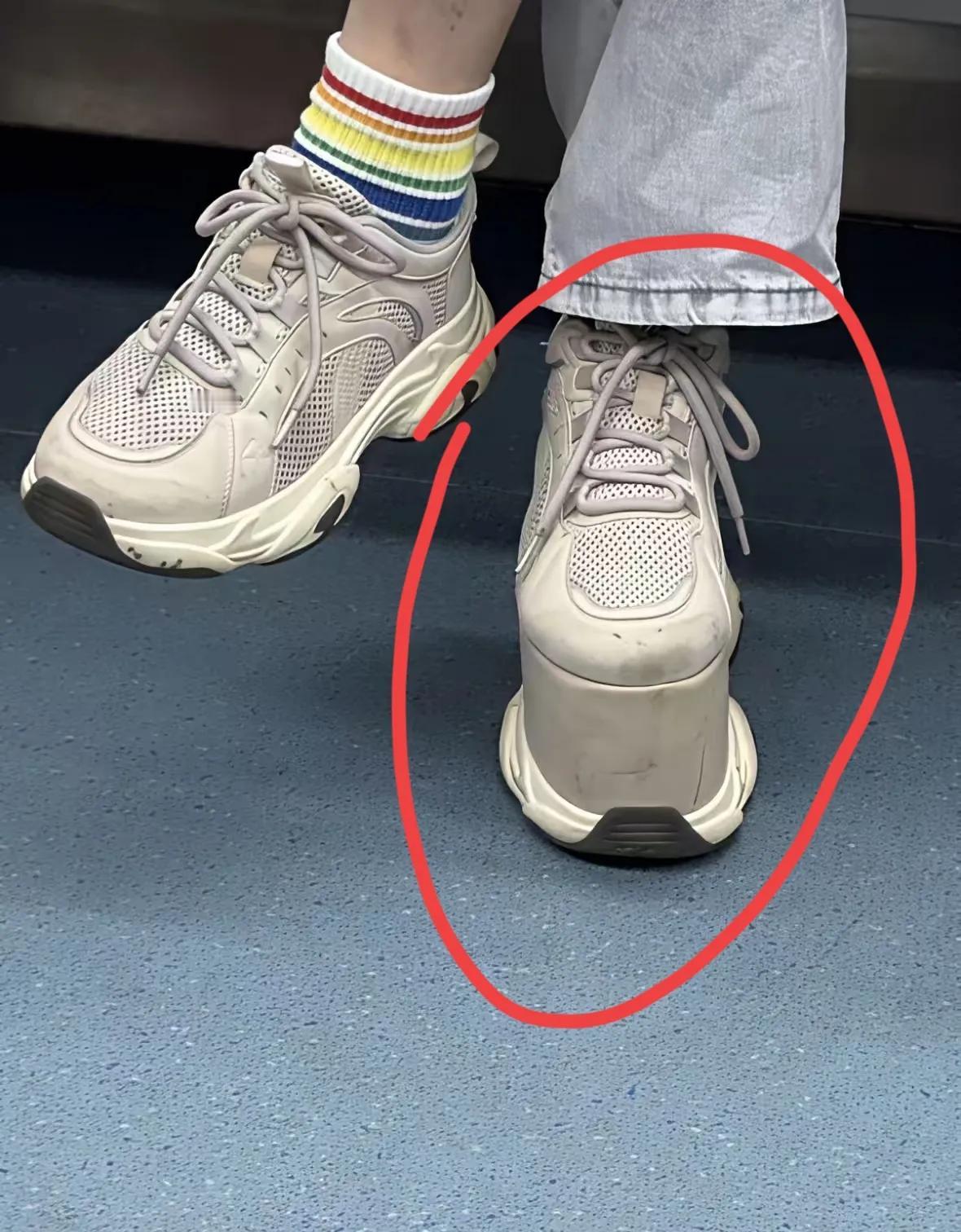 地铁上看到的,好奇了!这是什么鞋呀?怎么一高一低呢?谁懂啊?[what]