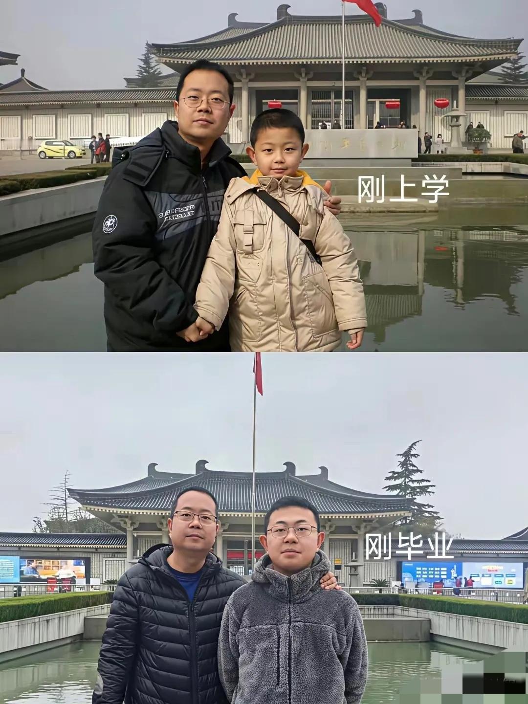 同样的两个人,时隔十五年,爸爸还是老样子,儿子已长大。[赞]