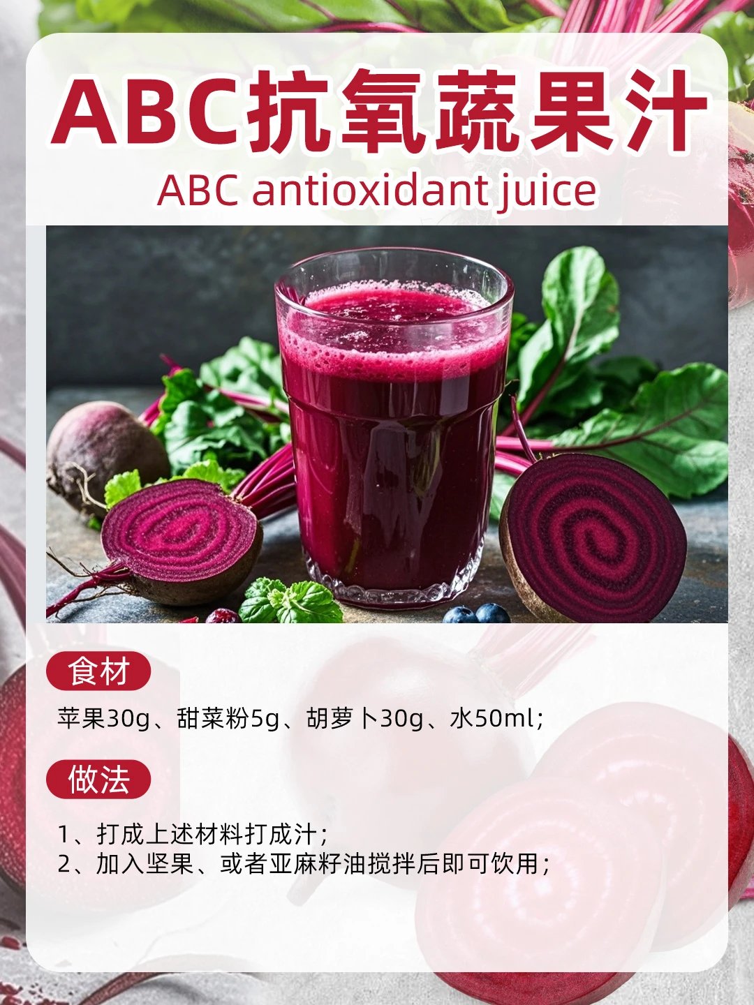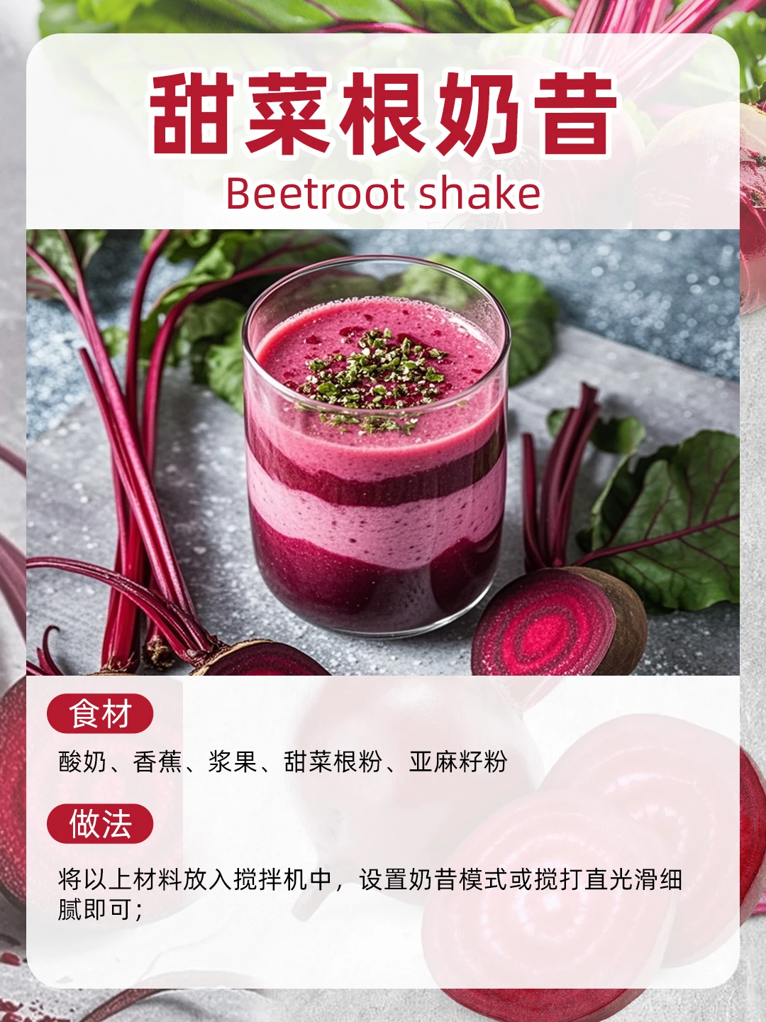 [萌萌哒R]甜菜根含有丰富的营养成分,如:叶酸、铁、维生素B12、维生素C、镁、钾、铜、锰、硝酸盐、甜菜色素、甜菜碱、类胡萝卜素、多酚等。