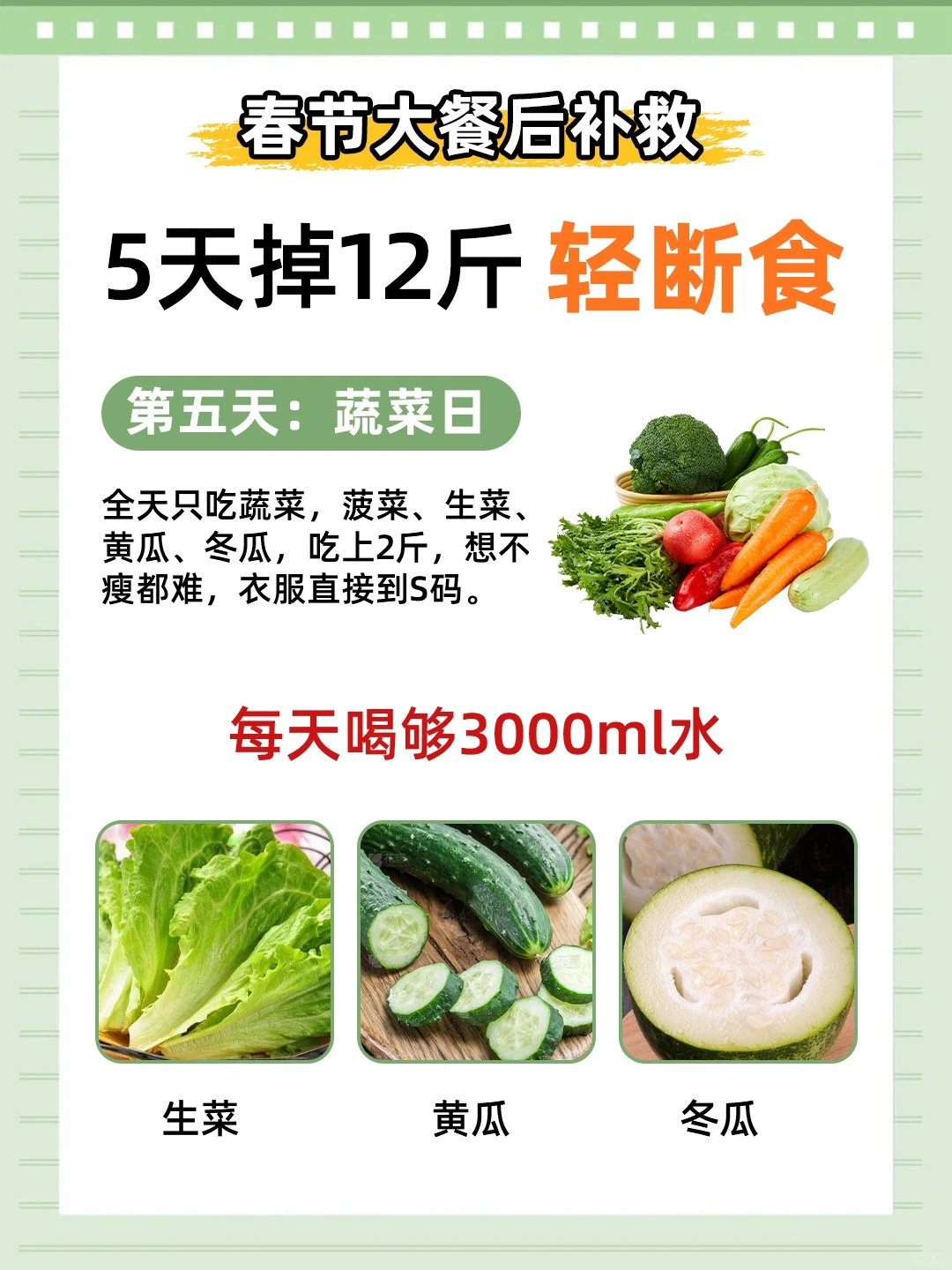 全天只吃蔬菜,菠菜、生菜、黄瓜、冬瓜,吃上2斤