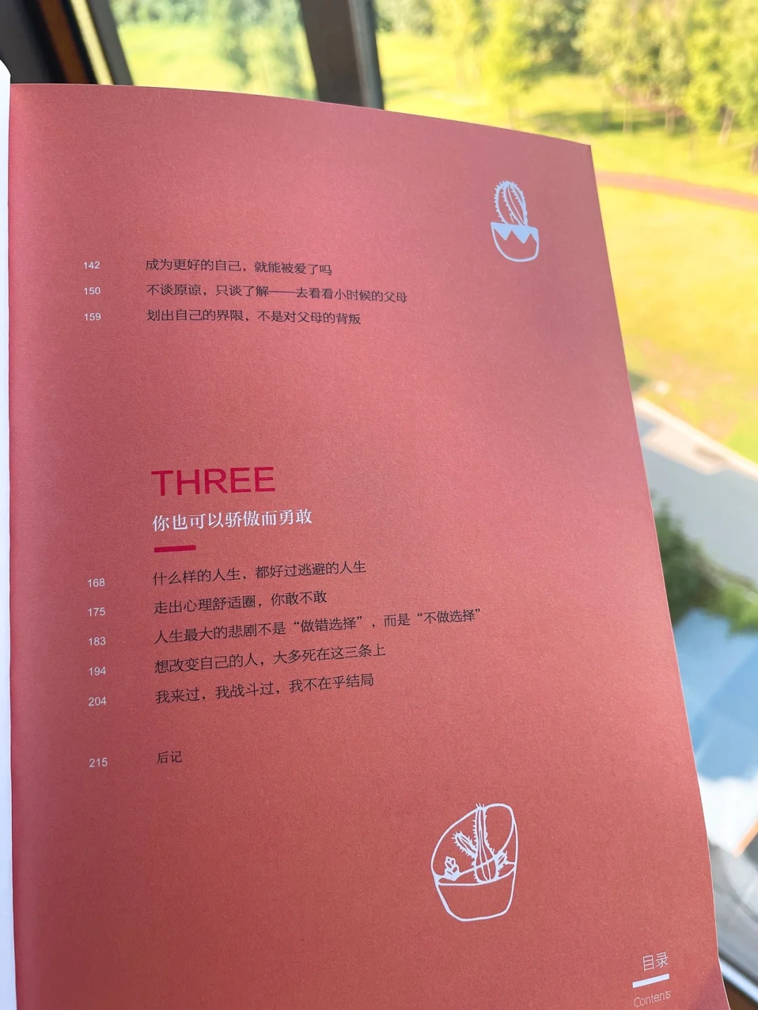 很庆幸在低谷期看到这本书,感触很深刻,自己的内心世界仿佛被作者看透,浑浑噩噩的生活自己活脱脱变成了一个负能量者,想要走出舒适区纠结的事情又太多,不停的折磨自己,内心越来越匮乏、麻木,但不管此刻处境多么糟糕,我们也要拥有改变这一切的能力,暂时还没有的话就去探索去找寻,这本书可以很好的帮到我们