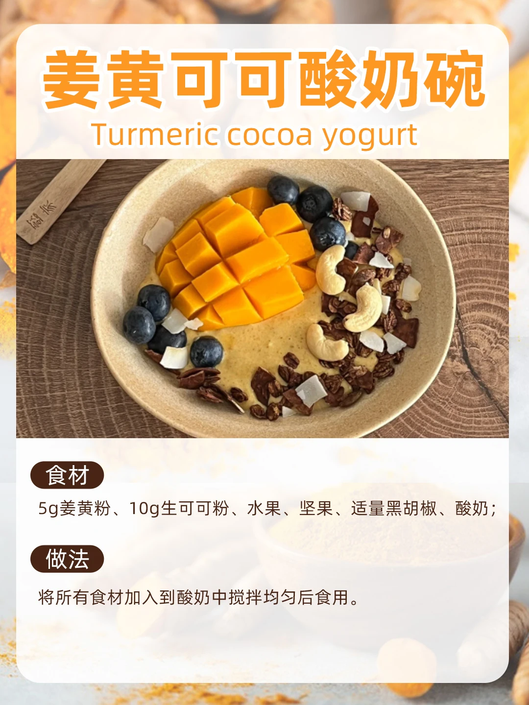 ✅作为香料与食品,姜黄多年来深受大众喜爱,2017年,姜黄成为全球“十大超级食物”之一 🌟姜黄之所以备受追捧,就是因为他堪比植物界的“Aspirin”。姜黄素是姜黄中zui重要的营养成分之一。 [黄色心形R]姜黄素是脂溶性营养素,不易被吸收 下面6⃣️种方法可以提升吸收率: ✔️黄金奶 ✔️姜黄热可可 ✔️姜黄南瓜浓汤 ✔️姜黄南瓜奶昔 ✔️姜黄防弹咖啡 ✔️姜黄可可酸奶碗