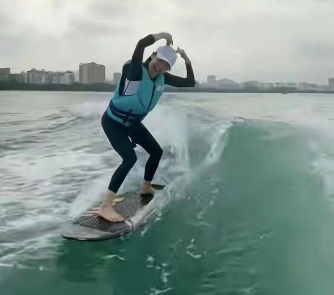 马龙老婆夏露好嗨!她晒出一个人出海度假的照片,冲起浪来超潇洒,还比心。意外的是夏露没有马龙和两个儿子的陪伴,自己玩得也很开心!