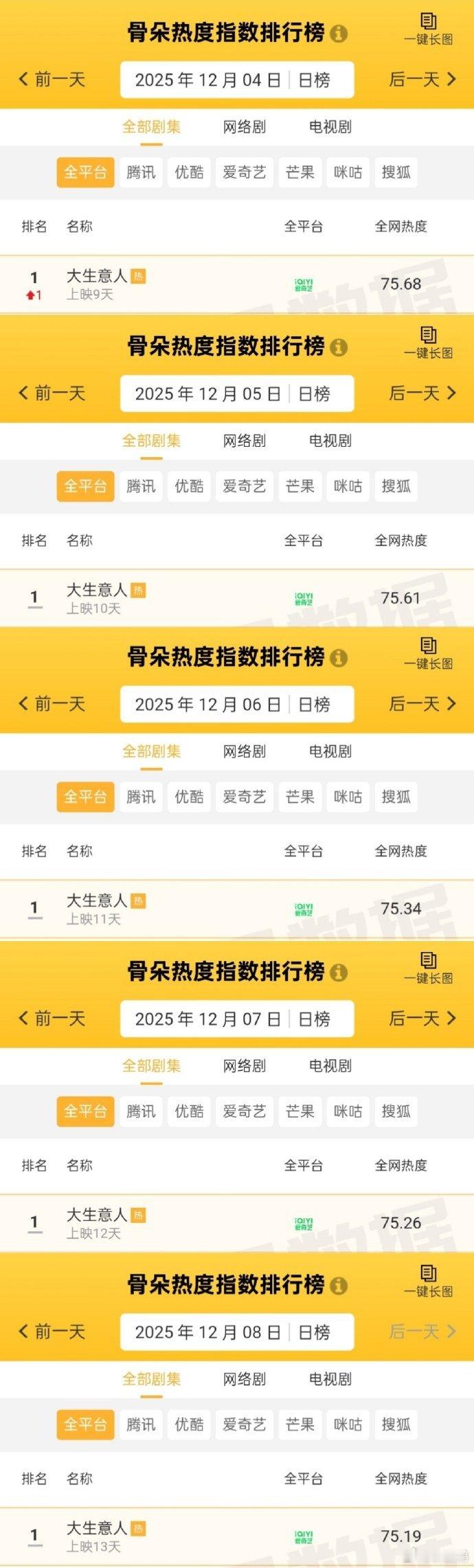 陈晓新剧不语只一味登顶TOP1大生意人 陈晓用演技杀疯了!《大生意人》开播 14 天 8 榜连冠,他在零下 30 度雪地跪戏亲力亲为,从落魄书生到商王的眼神转变全是戏,踏实演戏不搞噱头,这样的高质量剧不爆都难!