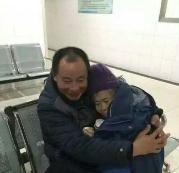 一对母子在车站等车,当时由于气温低大厅也有点冷,大哥就把母亲抱在了怀里,大哥讲到:小时候我妈就是这么把我抱大的,现在她老了怕冷,我抱着她能暖和一点。