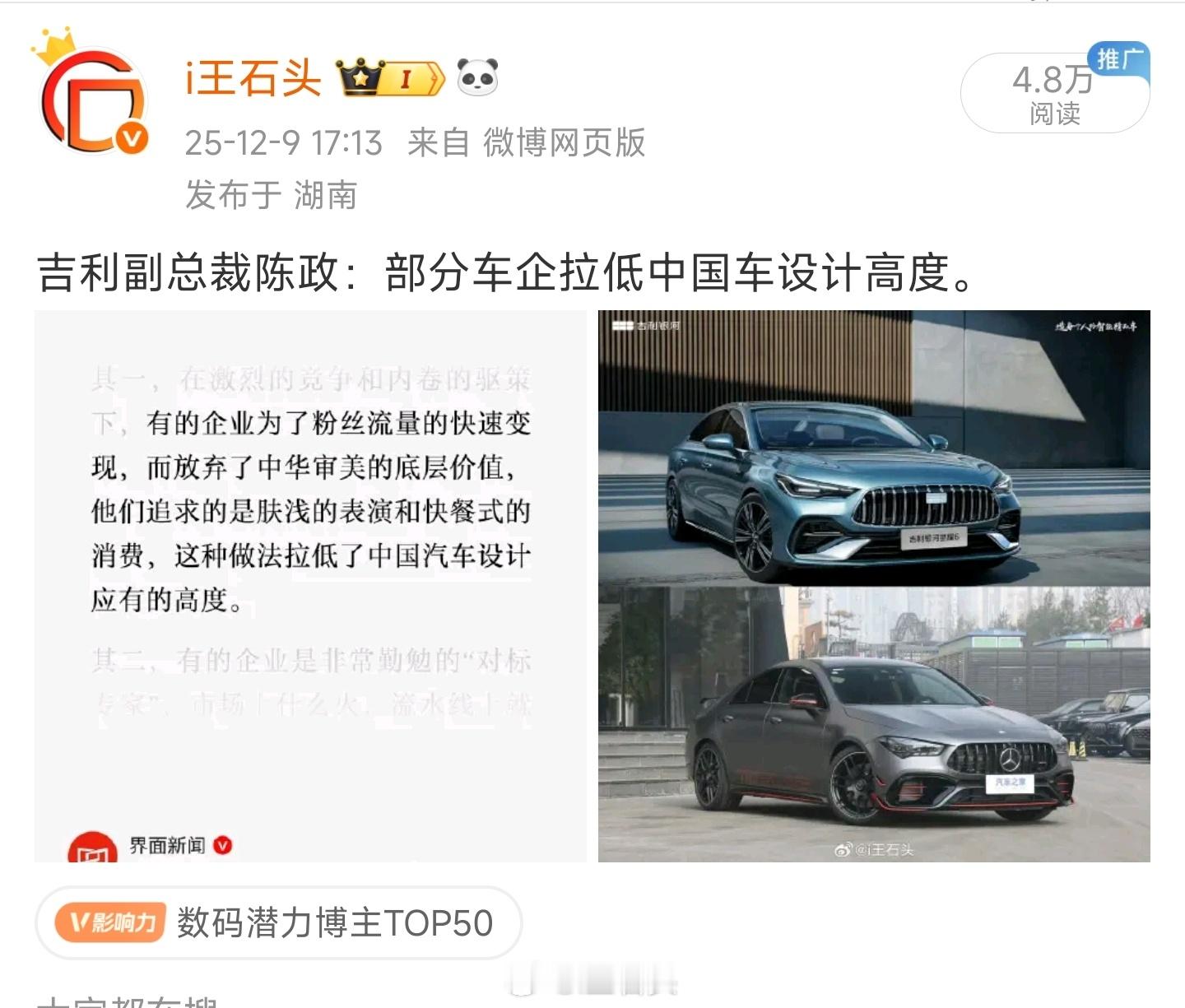 有些账号真是抽象到家了,我发的这条也没说吉利不好吧?我发这条,我在评论区说得够明白了吧,车没问题,车企没问题,只觉得高管说得有些抽象。结果评论炸来了这种账号,明明自己阴阳怪气,被我翻出证据还倒打一耙,不光高管抽象,闻风而至的不明账号也抽象。遇到这类阴阳怪气的,那不好意思,我比你更阴阳怪气,而且我还要再发条阴阳怪气,点赞~