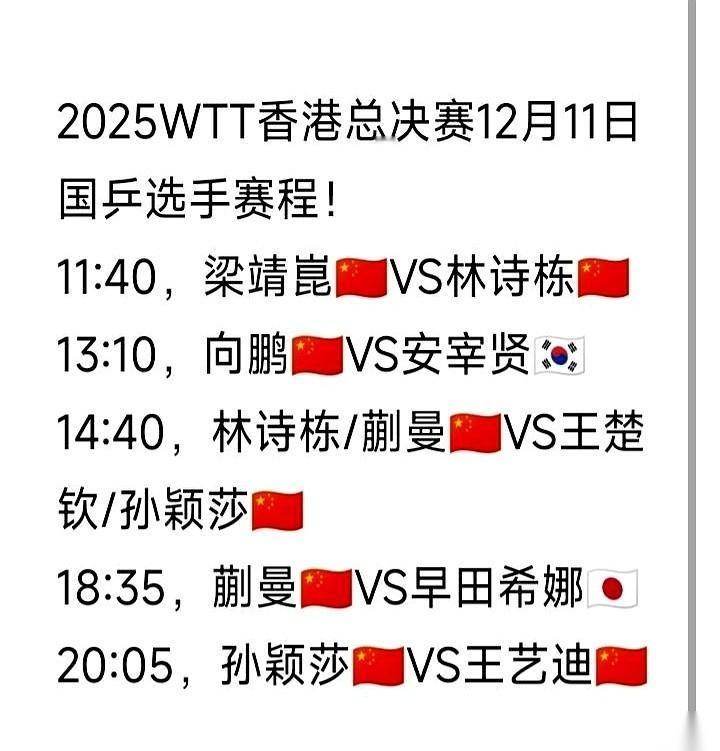 我真的服了这抽签。 前脚刚在成都抱在一起庆祝冠军,兄弟俩笑得跟孩子似的。 后脚就要在香港的赛场上,隔着一张球网,把对方往死里整。 你说这叫什么事儿啊? 中午一点多,梁靖崑对林诗栋。 残酷,太残酷了。 这还不算完。 下午三点,林高远王曼昱对王楚钦孙颖莎。 又是自己人打自己人。 还好,万幸是小组赛,不是一上来就淘汰。手心手背都是肉,不然让球迷这心往哪儿搁? 你以为这就完了? 晚上的黄金档才是真正考验心脏的时候。 蒯曼对早田希娜,莎莎对迪亚兹。 个个都是硬骨头。 唉。 这就是我们国乒的“幸福烦恼”吧。 强大到,最精彩、最揪心的比赛,往往都是我们自己人跟自己人打。 看着是爽,可这心啊,也跟着揪成了一团。
