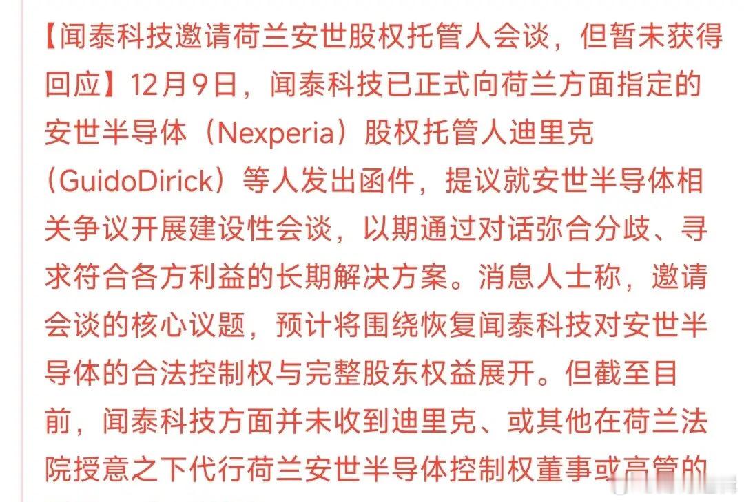 安世半导体中国积极解决,但是荷兰完全没有回应闻泰科技一直积极寻求荷兰解决安世半导体欧洲部分厂区被限制问题,但荷兰摆明了就是不想解决,完全对闻泰科技的要求视而不见,很可能就是为了后面的谈判多增加一些筹码,拿到更多的好处。欧洲区营收占安世半导体全球总营收的比例为21.7%,大概40亿元的营收,其中汽车芯片占据15%。闻泰科技一直积极解决欧洲安世半导体的问题就是想早点恢复生产,否则时间久了欧洲15%的市场将会被其他企业蚕食。