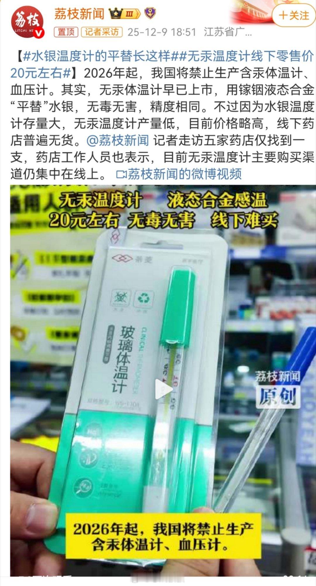 水银温度计的平替长这样原来市场上早就有水银温度计的平替这种是无汞体温计,用镓铟液态合金“平替”水银,无毒无害,精度相同。不过因为药店超市什么的水银温度计存量大,无汞温度计产量低。目前价格略高,售价20块钱左右,而且线下药店普遍无货。 广州